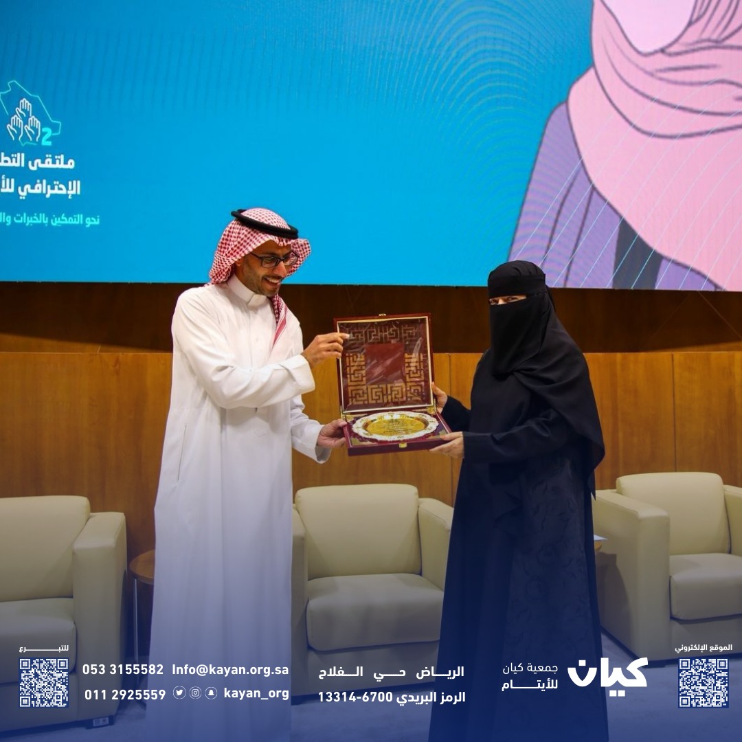 كما تم تكريم جمعية كيان إلى جانب شركاء النجاح، تقديرًا لجهودها المستمرة في خدمة الأيتام وتعزيز الشراكات المجتمعية التي تصنع الأثر الإيجابي، حيث تسلّمت التكريم المديرة التنفيذية الأستاذة ندى القنيبط.