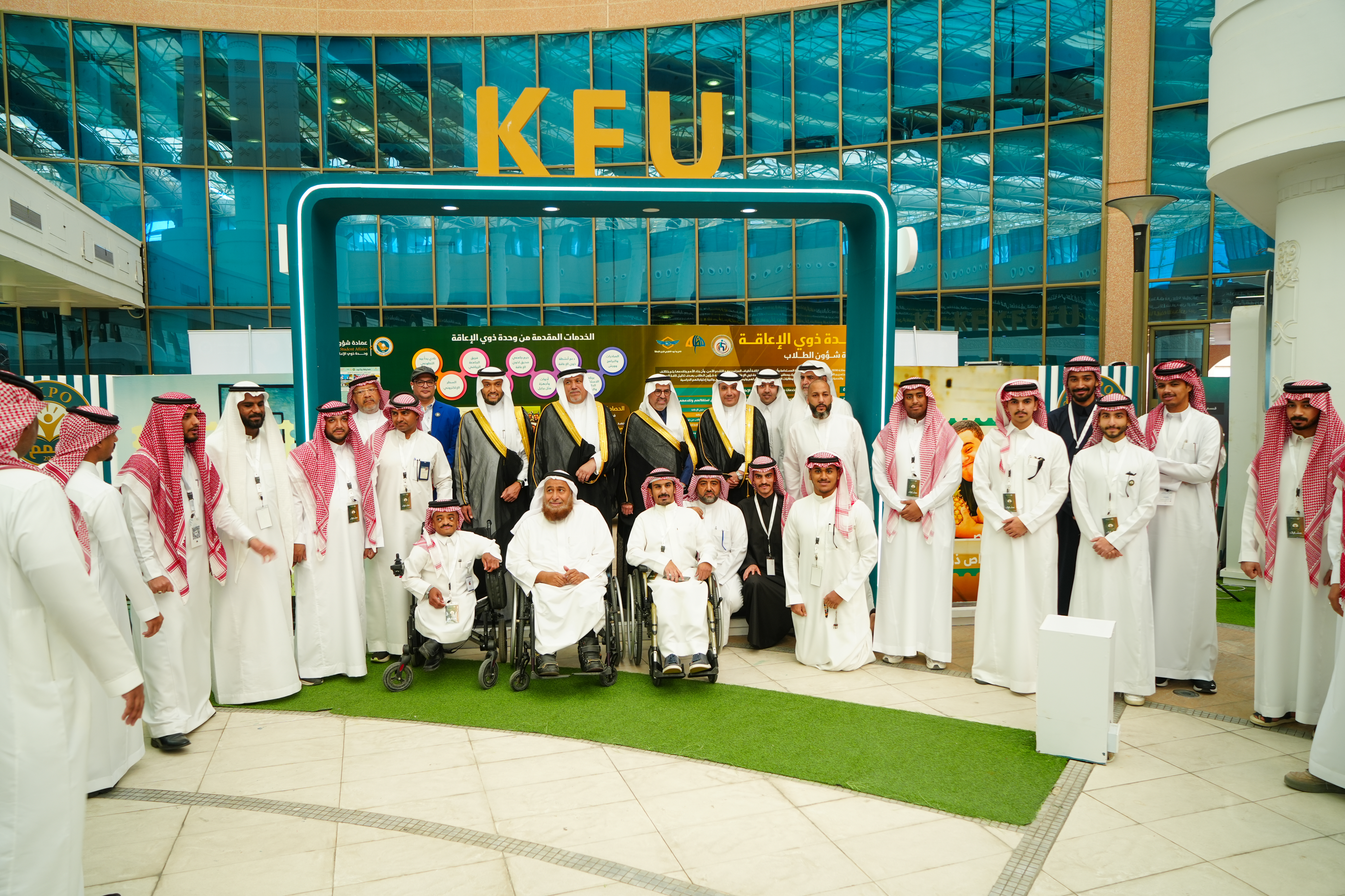 افتتح سعادة رئيس جامعة الملك فيصل الأستاذ الدكتور عادل بن محمد أبو زناده، معرض اليوم العالمي للأشخاص ذوي الإعاقة "إكسبو همم" في نسخته الثالثة، بحضور سعادة وكلاء الجامعة وقياداتها ومنسوبيها، والذي نظمته عمادة شؤون الطلاب ممثلة بوحدة ذوي الإعاقة صباح يوم الثلاثاء 18 جمادى الآخرة 1447هـ الموافق 9 ديسمبر 2025م في بهو العمادة.
