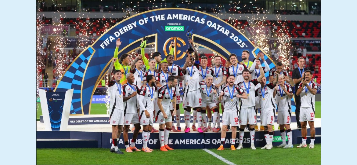 تُوِّج نادي فلامنغو البرازيلي بلقب ديربي الأمريكتين FIFA قطر 2025™ بعد فوزه بنتيجة 2-1 على نظيره نادي كروز أزول المكسيكي في استاد أحمد بن علي، ليسجل انطلاقة قوية استهلّ بها سلسلة المباريات الثلاث الختامية من كأس القارات للأندية FIFA قطر 2025™.