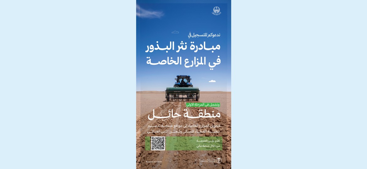 أعلن المركز الوطني لتنمية الغطاء النباتي ومكافحة التصحر إطلاق المرحلة الأولى من مبادرة "نثر البذور في المزارع الخاصة" في منطقة حائل، بالتعاون مع إمارة المنطقة، وذلك امتدادًا لنجاح مبادرة نثر البذور، وانطلاقًا من دور المركز في تنمية الغطاء النباتي، وتعزيز الاستخدام الأمثل للموارد الطبيعية، وتوفير بدائل مستدامة تسهم في تحقيق مستهدفات مبادرة السعودية الخضراء.