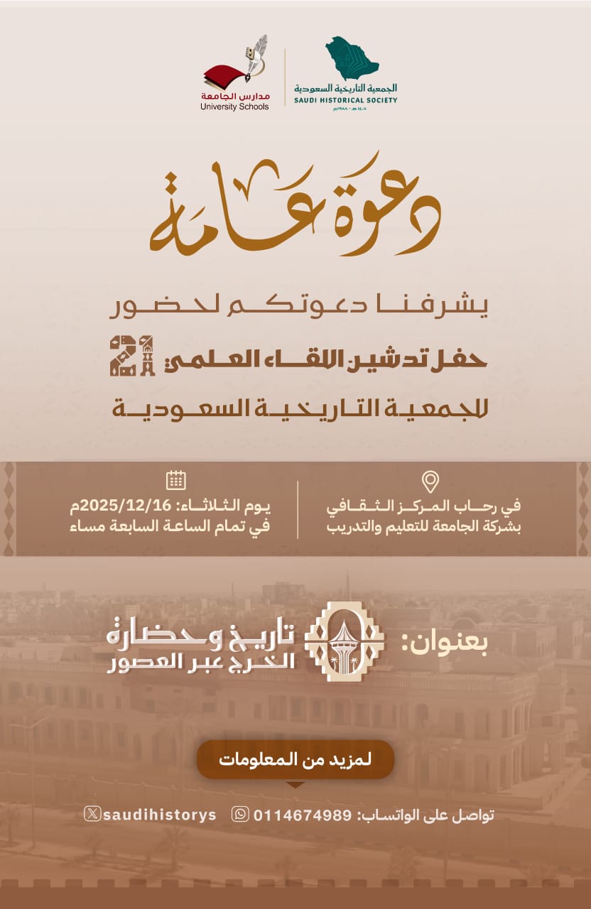 ويهدف اللقاء إلى تقديم محتوى علمي رصين يسهم في توثيق الإرث التاريخي، وتعزيز الوعي الثقافي، ودعم الشراكة بين المؤسسات الأكاديمية والمجتمعية، بما يتوافق مع مستهدفات التنمية الثقافية والمعرفية في المملكة.