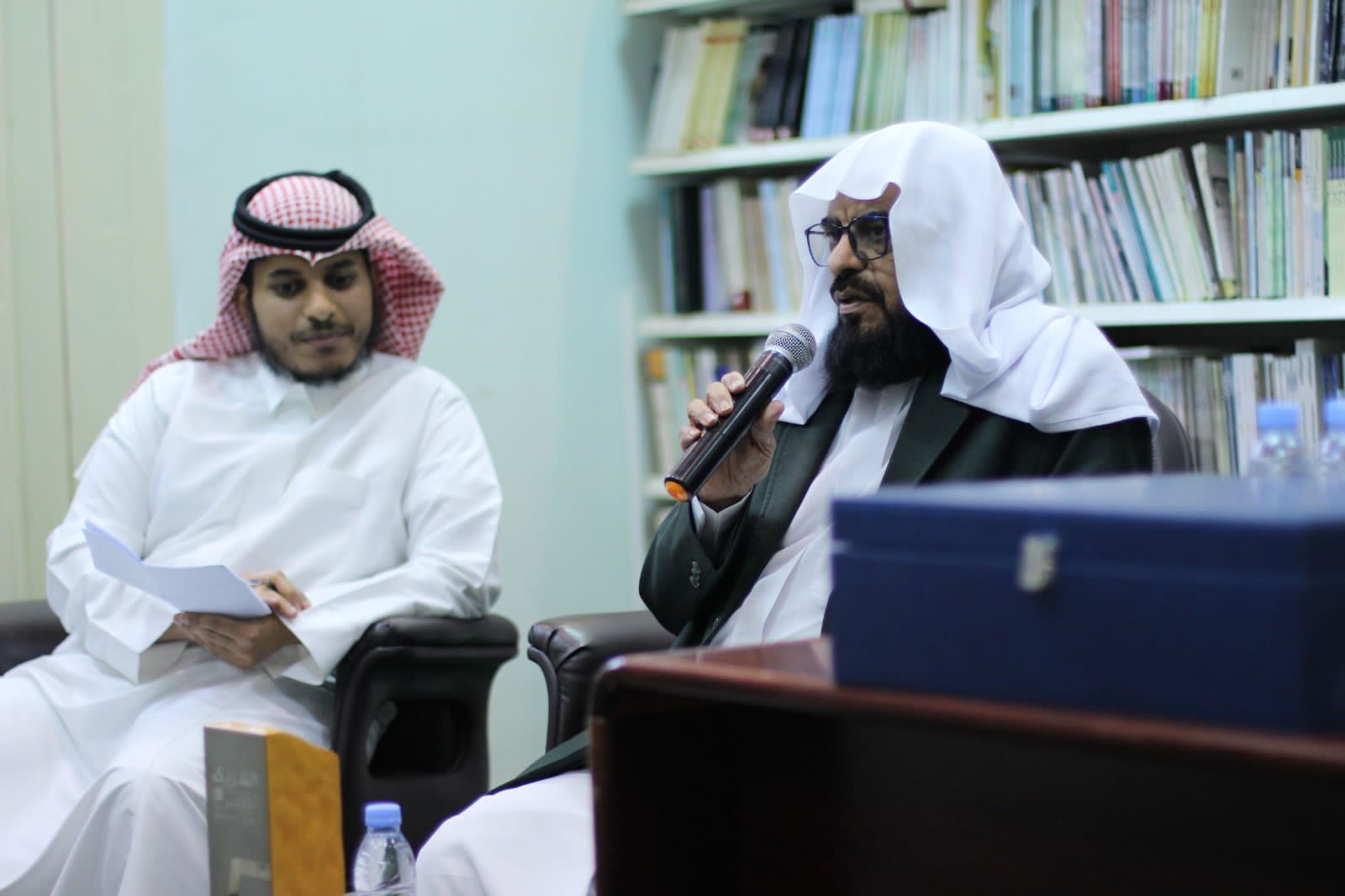 وقد قام مدير الأمسية الأستاذ مهند الحبيشي بمحاورة أمين المكتبة الغامدي حول عدة محاور ونقاط هامة ثم قام بعد ذلك بفتح المجال للحضور لطرح أسئلتهم ومداخلاتهم ثم قام رئيس الجمعية الأستاذ عطا الله الجعيد بتكريم مدير الأمسية والأستاذ محمد الغامدي بعد مداخلته التي طلب فيها من الأستاذ محمد الغامدي تأليف مصنف يروي فيه قصة المكتبة والمؤلفات الموجودة فيها والكتب المطبوعة في الجمعية بحيث يكون مرجعا لمرتادي المكتبة ومحبي الأدب والثقافة .