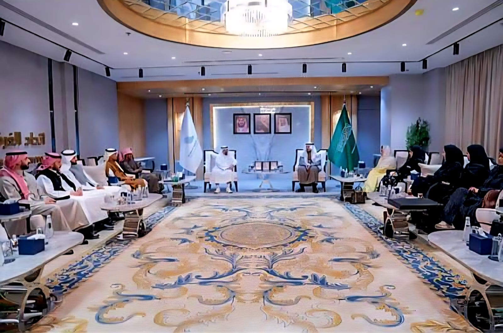 استقبل رئيس اتحاد الغرف التجارية والصناعية السعودية الأستاذ حسن معجب الحويزي، وفد نادي الإعلام الحديث، برئاسة الدكتور شافي العتيبي، وأعضاء مجلس إدارة النادي ، الأميرة هند بنت عبدالرحمن ، أ. خلف ملفي ، أ. سمر المقرن نائب الرئيس ، د. منال الرويشد ،د. إبتهال الشدوخي ، د. علاء القيسي ،د. رئيسة العمري ، م. عبدالرحمن شحات ، أ. فيصل العجلان ، أ. أميرة السهلي ، أ. هيلة العمري ،أ وجدان القحطاني ، في مستهل زيارتهم لمقر الاتحاد بالرياض، قبل أن يعتذر عن مواصلة الاجتماع لارتباطه باجتماع آخر.