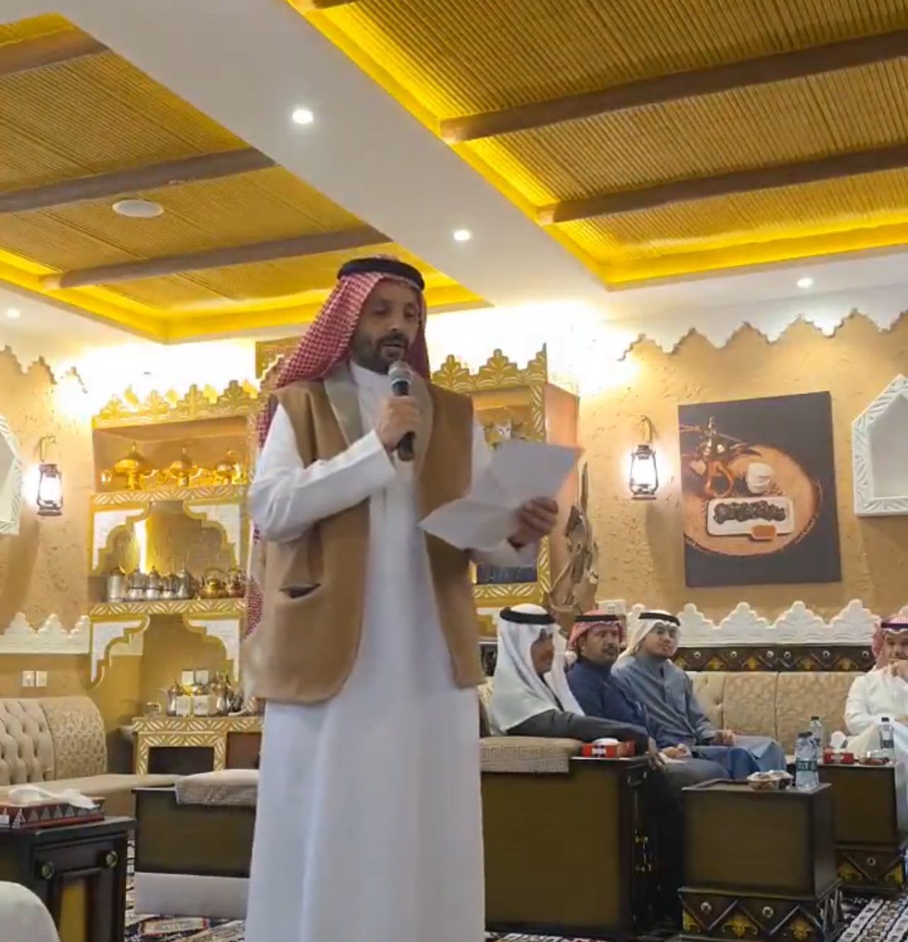 وقد أدار الحفل الأستاذ سهم بن ضاوي الدعجاني، وبدئ الحفل بكلمة ترحيبية ألقاها صاحب مجلس أوراف الدكتور فواز بن عبدالعزيز اللعبون، ومما قال: "أساتذتي وأصدقائي، في تعبيري عن سعادتي لن أقول لا أدري ماذا أقول، لكني أقول: يَعجِز البيان عن وصف سعادتي بكم، ووصف ما أُكِنّه من مشاعرِ سرورٍ وحبور بهذا الاجتماع النبيل الذي شرفتموني فيه بقبول الدعوة، وبإضاءته بأرواحكم الوضيئة، ووجوهكم المضيئة. أعلام كبار السن والقدر تركوا شواغلهم في ليلة شتائية يلتف حولهم فيها أبناؤهم أبوا إلا أن يكرمونا باللقاء، وأعلام أفذاذ جاؤوا من أقصى المدن متكبدين عناء السفر، ليسفروا في مجلسنا بدورا، ويملؤوا صدورنا حبورا، وما أعلم أحداً ضرب أكباد الإبل وسافر إلا إذا كان الحُبُّ حاديَه.