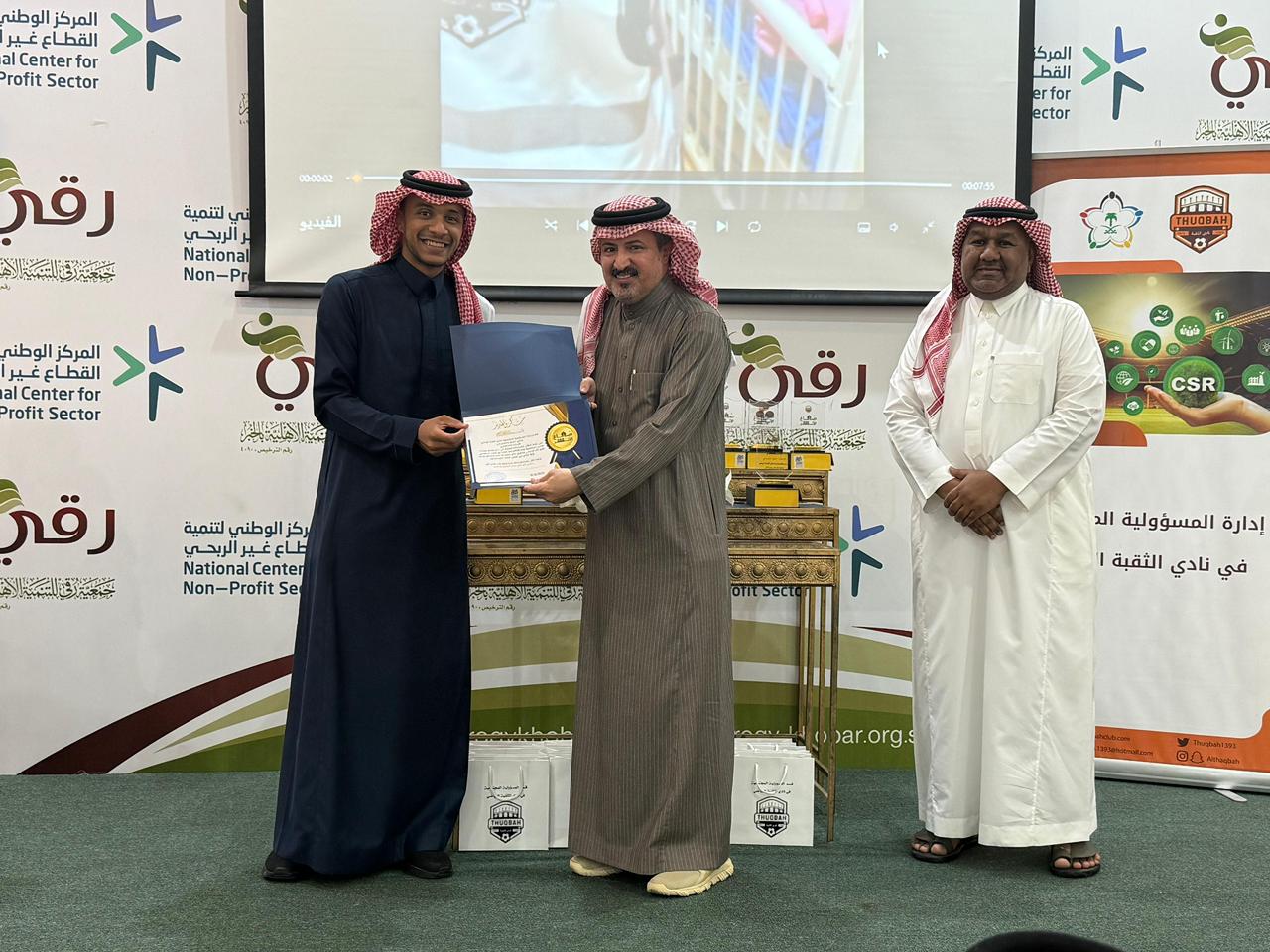 وأكّد رئيس مجلس إدارة نادي الثقبة الرياضي الأستاذ الوليد الصياح أن نادي الثقبة ماضٍ في تعزيز دوره المجتمعي والإنساني، وأن مبادرات المسؤولية الاجتماعية تمثل امتدادًا لرسالة النادي الرياضية، مشيرًا إلى أن دعم مثل هذه المبادرات يأتي إيمانًا بأهمية الأثر المستدام، وبالدور الذي يمكن أن تقدمه الأندية الرياضية في خدمة المجتمع، وبما يتوافق مع مستهدفات رؤية المملكة 2030.