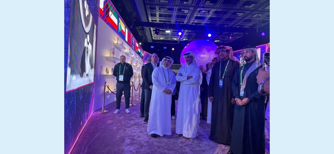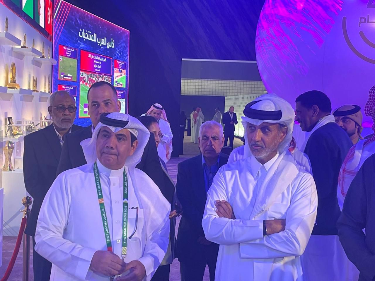 زار الشيخ حمد بن خليفة بن أحمد آل ثاني وزير الرياضة بدولة قطر النائب الثاني لرئيس الاتحاد العربي لكرة القدم، معرض الاتحاد العربي المقام في مدينة الدوحة .