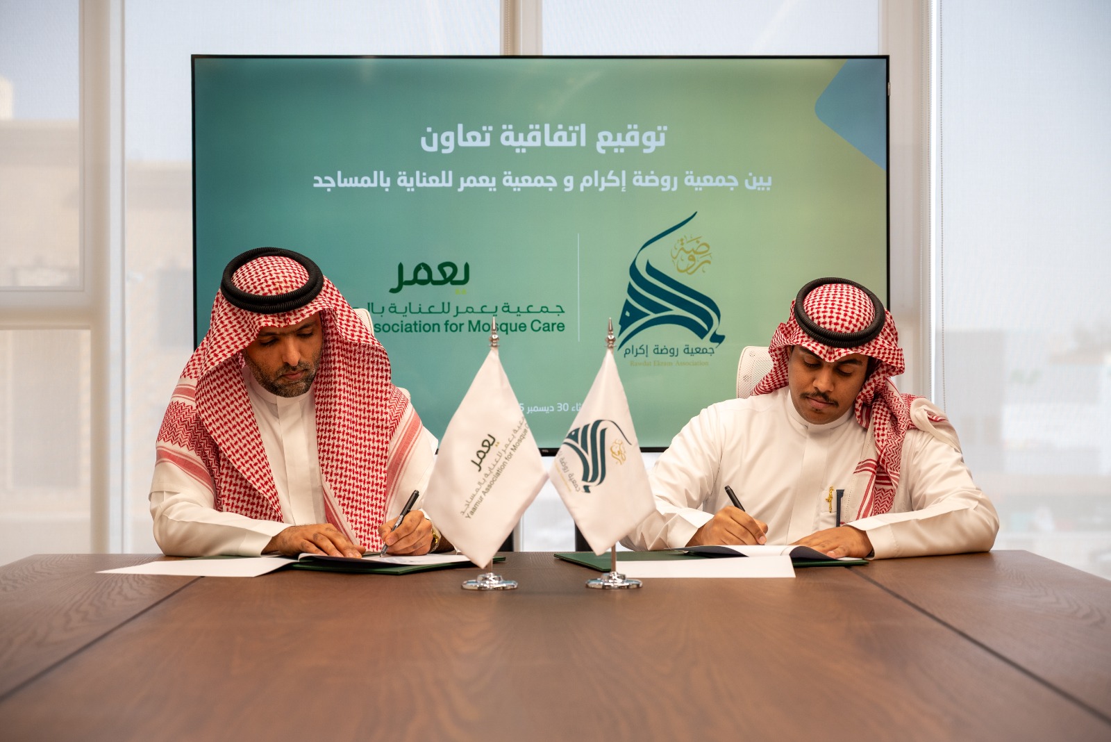 وجرى توقيع الاتفاقية بحضور قيادات الطرفين، حيث مثل جمعية روضة إكرام بالمنطقة الشرقية المدير التنفيذي الأستاذ فهد الدريس، فيما مثل جمعية يعمر للعناية بالمساجد الرئيس التنفيذي المهندس عبدالله البنعلي.