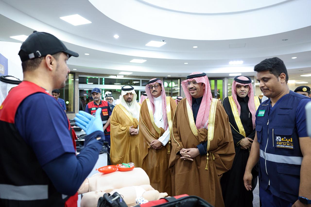 وفور وصول وكيل الإمارة لمقر الحفل، اطّلع على المعرض المصاحب للفعالية الذي يحتوي على أركان تعريفية بأساليب الإنقاذ.