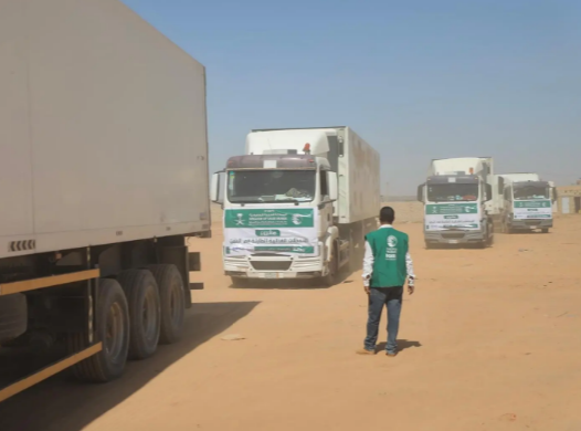 وتحمل الشاحنات على متنها سلالًا غذائية متنوعة، وتمورًا، وحقائب إيوائية، وخيامًا، تستهدف الأسر الأشد احتياجًا لتخفيف معاناتهم وتوفير حياة كريمة لهم وسط الظروف الإنسانية الصعبة.