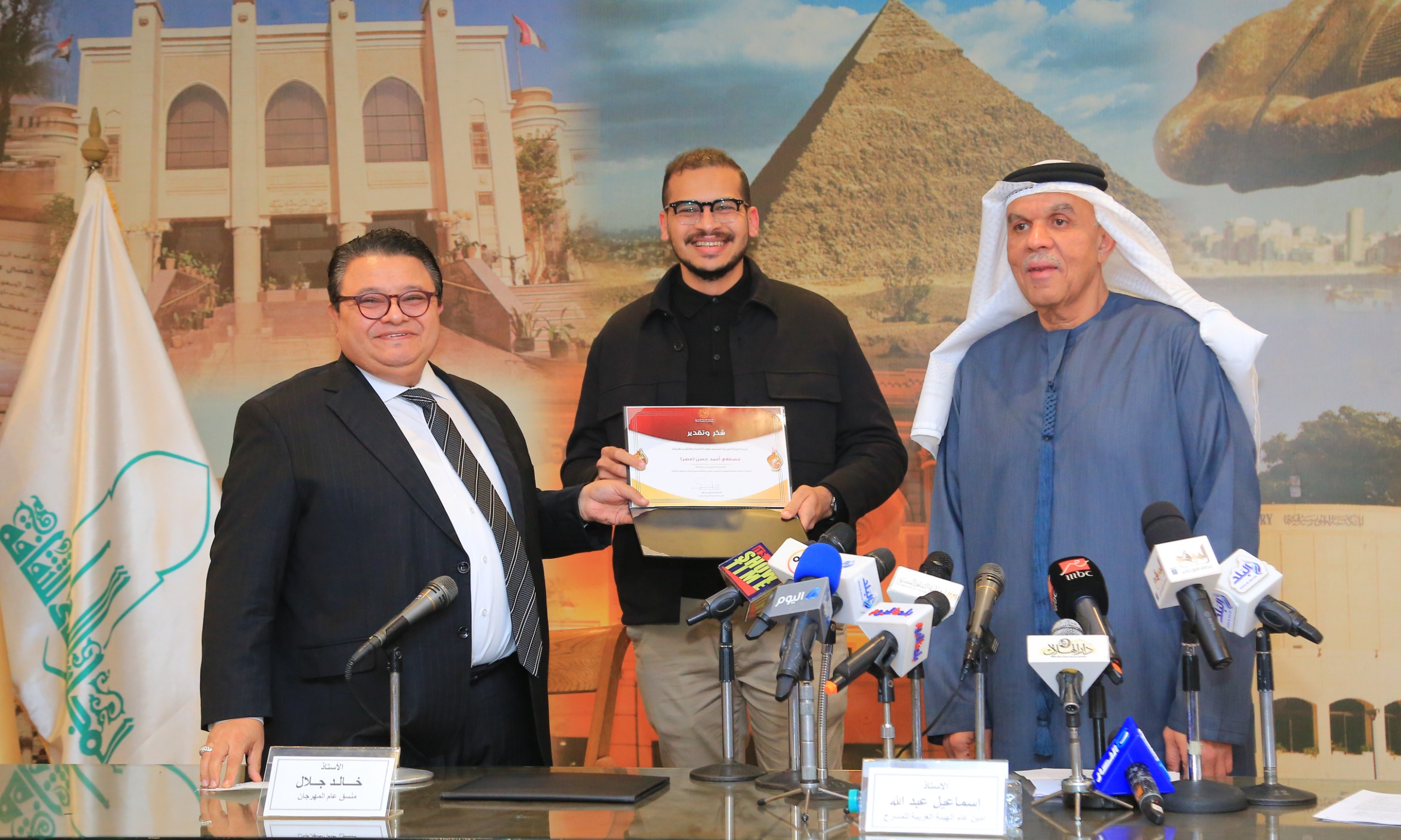 وجه إسماعيل عبد الله ، أمين عام الهيئة العربية للمسرح ، التحية لفخامة السيد الرئيس عبد الفتاح السيسي لتفضله برعاية الدورة السادسة عشرة لمهرجان المسرح العربي .