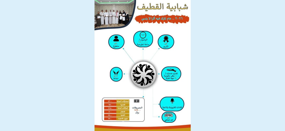بهذه الأرقام، تؤكد "شبابية القطيف" استمرارها في تحقيق مستهدفات رؤية المملكة 2030 في قطاع التطوع، مقدمة نموذجاً ملهماً في كفاءة الإنفاق وتأثير الأثر المجتمعي.