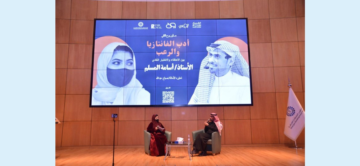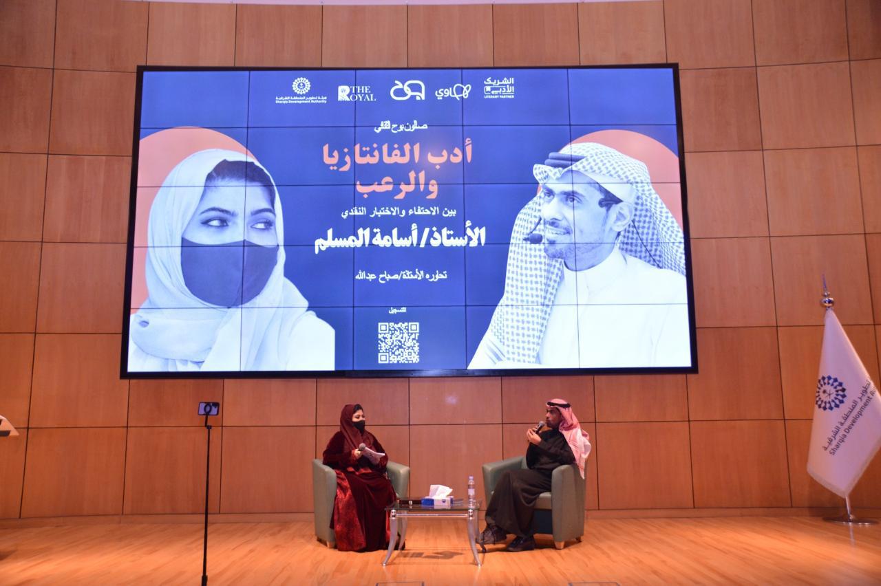 وتناولت الأمسية البدايات الأولى لتشكّل هوية أسامة المسلم الأدبية، والشرارة التي قادته لاختيار الفانتازيا مسارًا سرديًا، إضافة إلى مشروعه في توطين الأسطورة الخليجية داخل عوالم خيالية قادرة على العبور إلى القارئ العربي والعالمي.