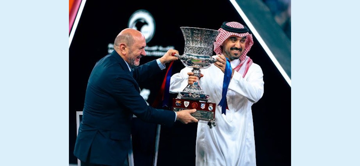 توَّج صاحب السمو الملكي الأمير عبدالعزيز بن تركي الفيصل؛ وزير الرياضة، رئيس اللجنة الأولمبية والبارالمبية السعودية، فريق برشلونة بكأس السوبر الإسباني لعام 2026، عقب فوزه على ريال مدريد بنتيجة (3-2)، في المباراة النهائية التي أُقيمت على ملعب الإنماء بمدينة الملك عبدالله الرياضية في جدة، وذلك بحضور رافائيل لوزان أبال رئيس الاتحاد الإسباني لكرة القدم، وعدد من قيادات الوزارة والاتحاد الإسباني، ومسؤولين رياضيين في القطاع الرياضي، وسط حضور جماهيري كبير جداً بلغ 60326 متفرجًا.