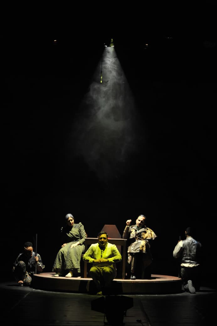وعن الفضاء وتوظيفه تقول الناقدة نوال بن إبراهيم: توظيف الفضاء ، اعتنى بالفضاء في اطار مادي وشبحي ساهم في توصيل فكرة الغموض والشر واعطى انطباع بشري ابرز مسرح مليء بالتوتر والموت واهتم بتوزيع الإضاءة والممثلين بشكل متناسق لخلق صور بصرية تجسد رؤيته التعبيرية.