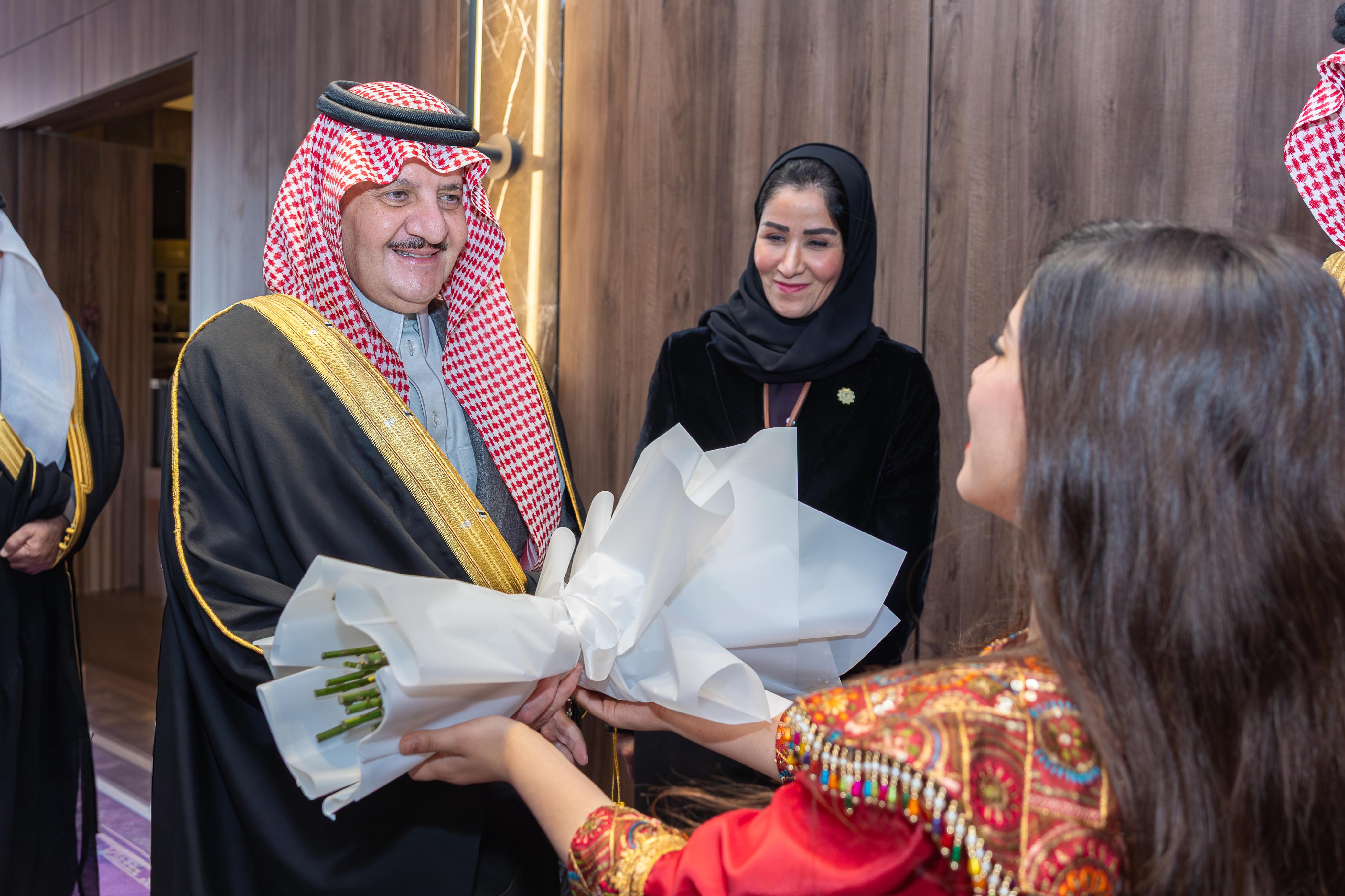وشاهد سموه أوبريتاً قدّمه الطلاب والطالبات بعنوان "مولد همة"، جسّد مسيرة التفوق والاعتزاز بالوطن، وما يحظى به التعليم من دعم واهتمام.
