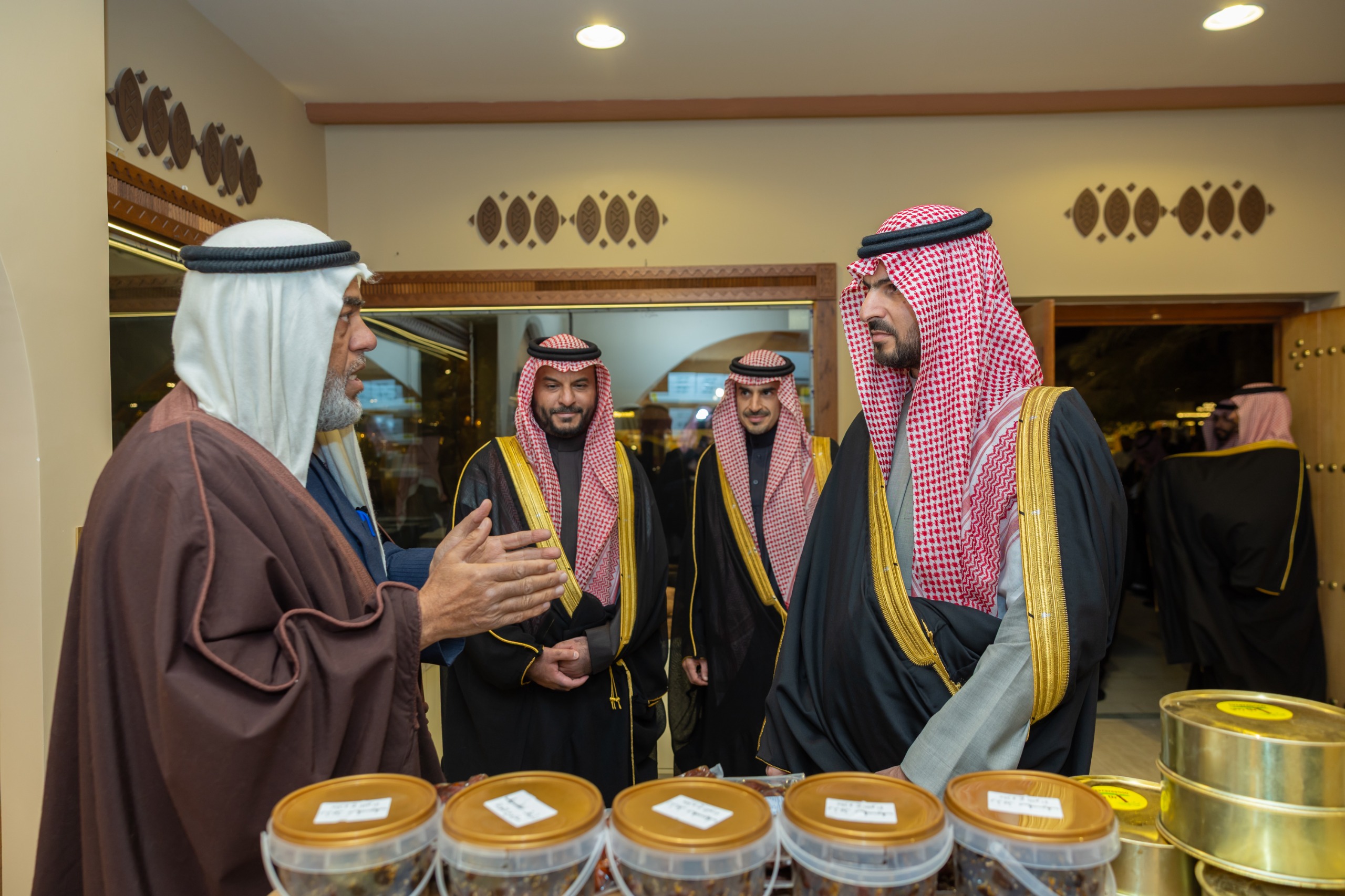 والتقى سمو نائب أمير المنطقة الشرقية بعدد من تجار البشوت من السعودية وسوريا والعراق والأردن والبحرين وقطر والكويت، واطلع على أجنحة الورش التدريبية التي يقدمها المعهد الملكي للفنون التقليدية “ورث”، وبيت الدفة الذي يعرض العباءة النسائية التقليدية، والمعزب الصغير المخصص لتعريف الأطفال بصناعة البشوت وبروتوكول ارتدائها، إلى جانب التجربة الغامرة.