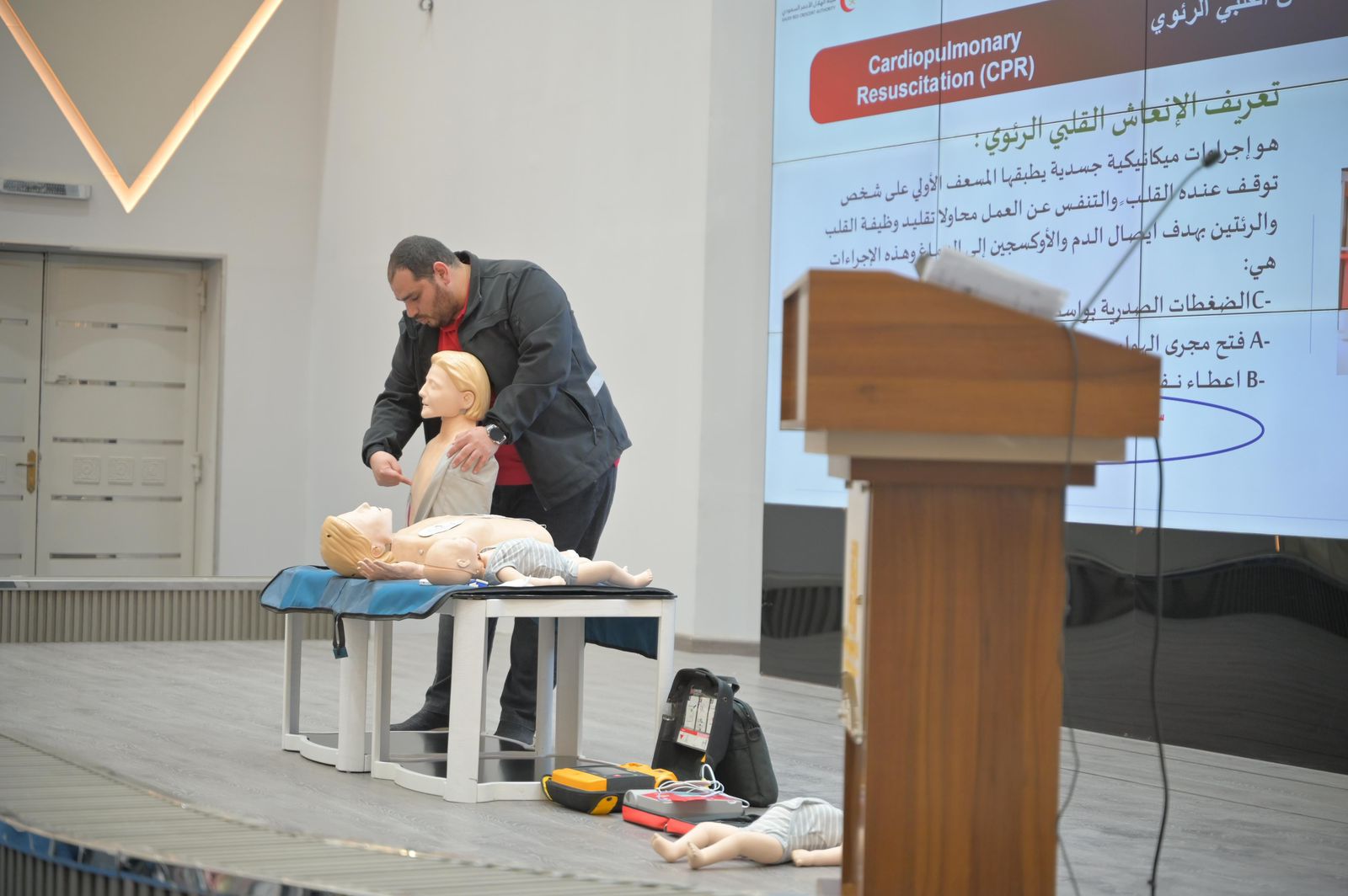 ويستهدف البرنامج تدريب وتأهيل المشاركين على المهارات الإسعافية الأساسية، التي تشمل الإنعاش القلبي الرئوي، والتعامل مع حالات الغصة والنزيف، إضافة إلى كيفية استخدام جهاز الصدمات القلبية الآلي (AED) في حالات توقف القلب والتنفس.