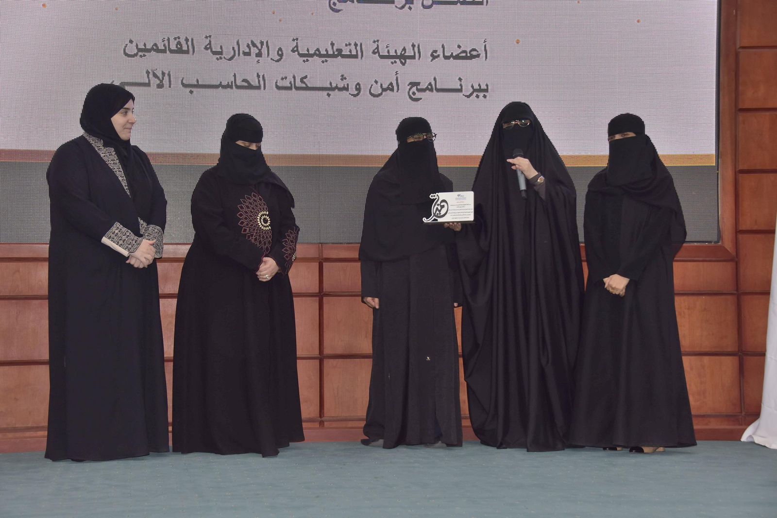 من جانبها أضافت وكيلة الكلية للتطوير والشراكات المجتمعية د. منى الغامدي نحتفي اليوم بنخبةٍ من أعضاء الهيئتين التعليمية والإدارية الذين حوّلوا التميّز من شعارٍ إلى ممارسة، ومن التزامٍ إلى إتقان فالجودة الحقيقية لا تُختزل في أنظمةٍ أو إجراءات، بل تنهض بعقولٍ واعية، وضمائر مهنية، وجهودٍ صامتة لا تبحث عن الظهور، لكنها تُحدث الفرق وتصنع الأثر ، و في الختام كرمت عميدة الكلية الفائزين، والفائزات في مسارات الجائزة من الأقسام الأكاديمية، وأعضاء الهيئة التعليمية، والإدارية والجهات ذات العلاقة لتميز وتطوير ممارساتهم المتميزة، والشراكة المجتمعية المحققة للإثراء المتبادل.