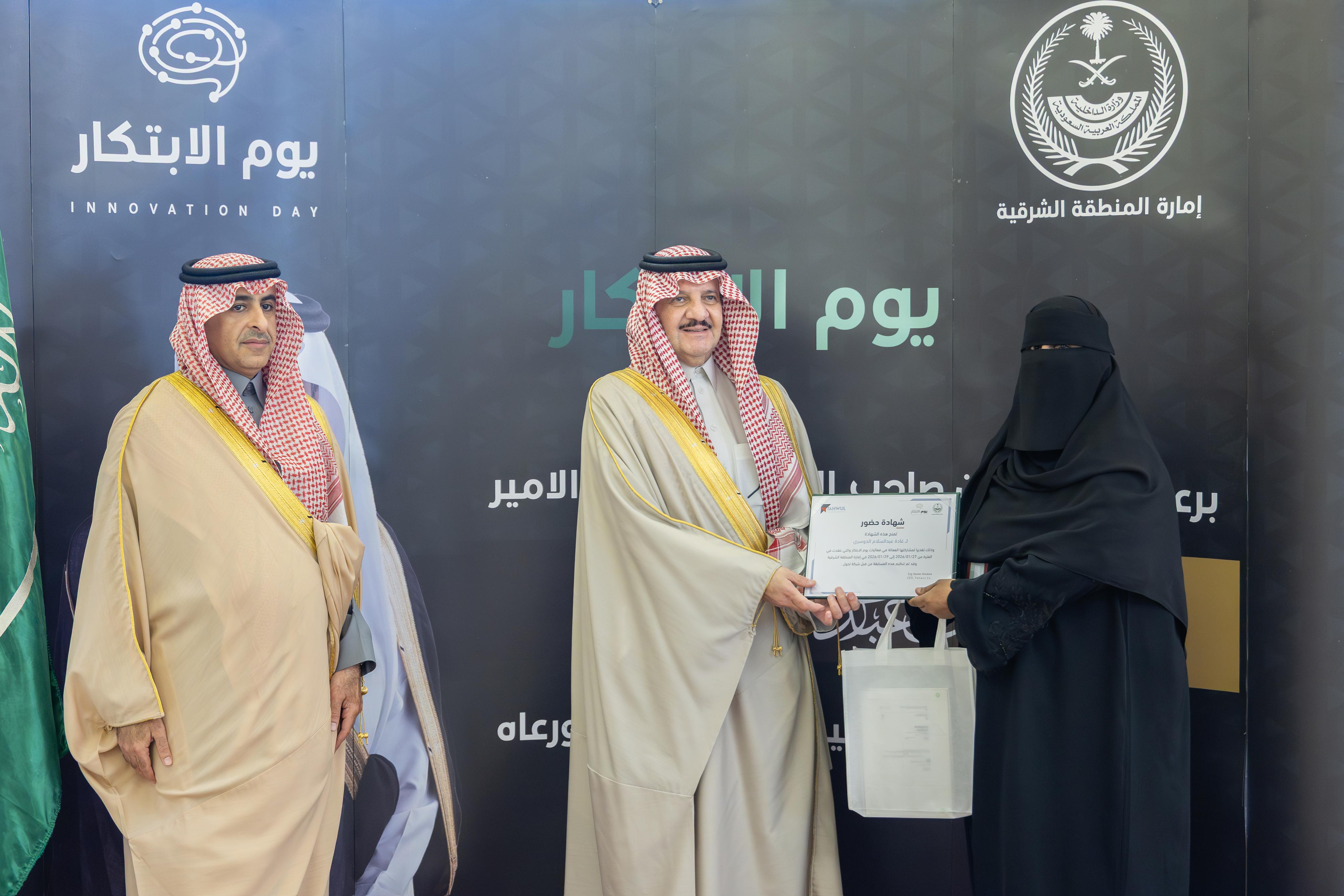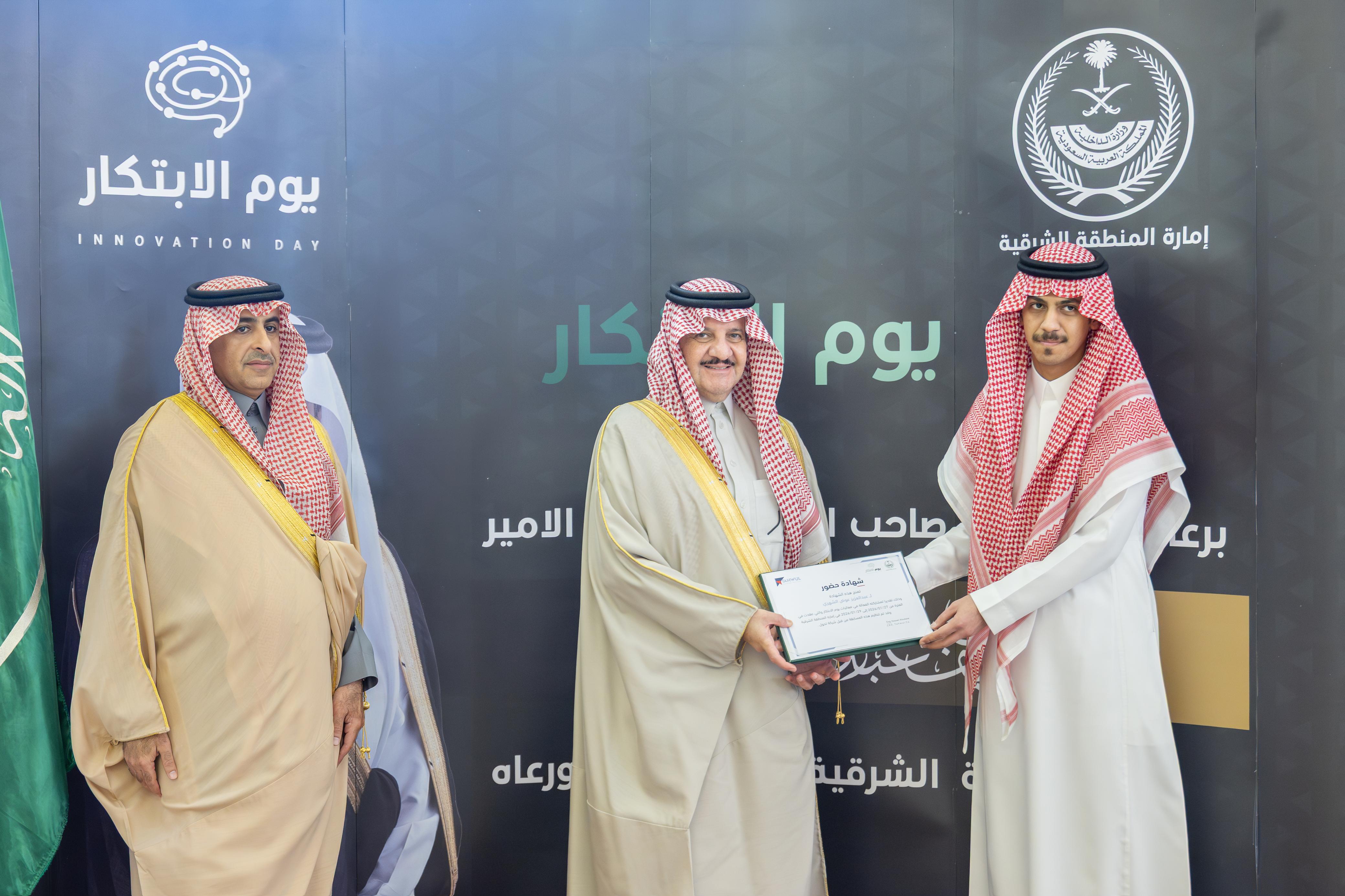 وأكد سمو أمير المنطقة الشرقية أن الابتكار يمثل ركيزة أساسية في الارتقاء بالأداء الحكومي وتحسين جودة الخدمات، مشيراً إلى أهمية دعم المبادرات التي تسهم في إيجاد حلول مبتكرة، واستثمار طاقات الكفاءات الوطنية بما يواكب تطلعات التطوير المؤسسي، ويعزز كفاءة العمل وجودة المخرجات.