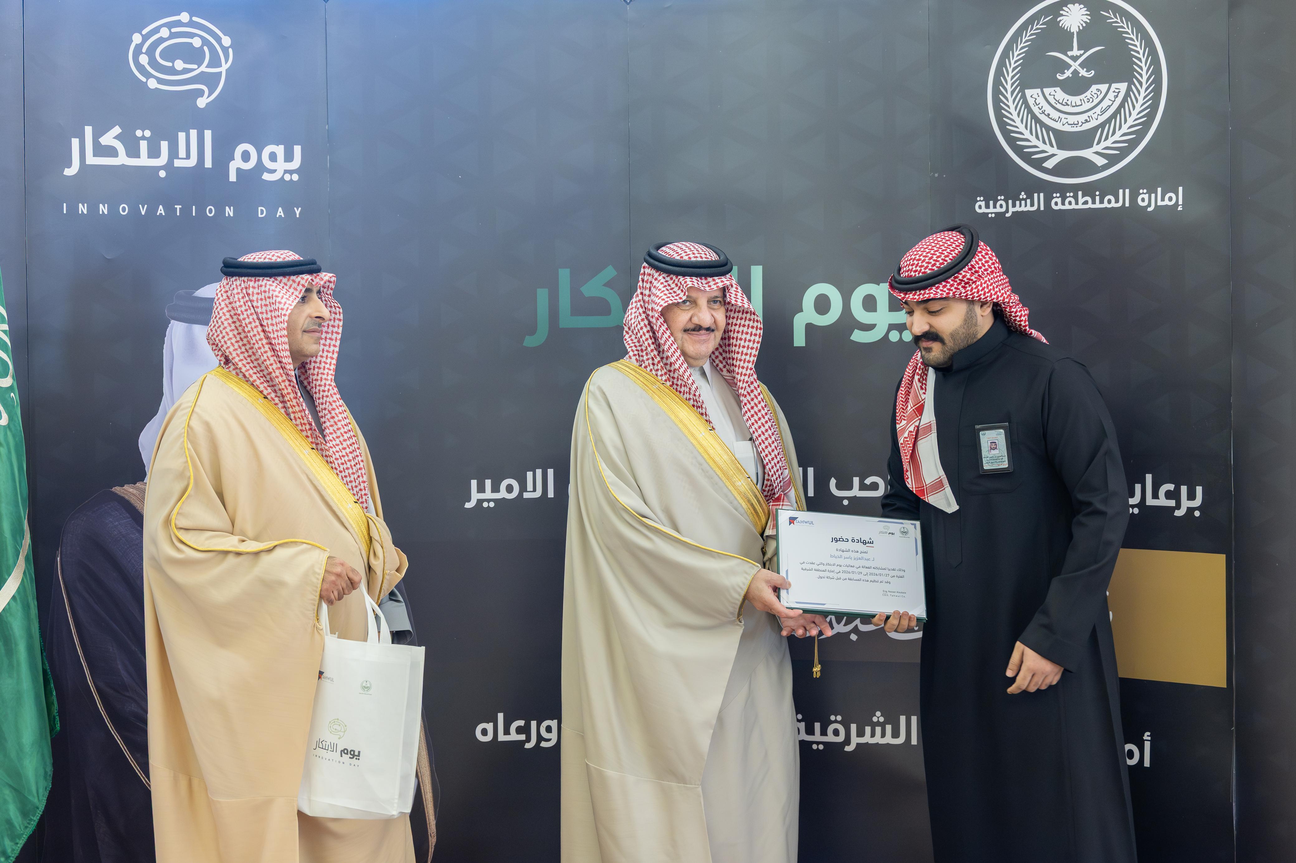كما كرّم سموه الشريك الراعي شركة "تحول"، ومثّلها الأستاذ ناصر السبيعي، تقديراً لدورها في دعم يوم الابتكار.