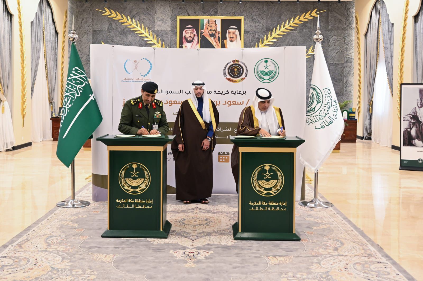 شهد صاحب السمو الملكي الأمير سعود بن نهار بن سعود بن عبدالعزيز محافظ الطائف اليوم، توقيع مذكرة تعاون بين مديرية السجون في منطقة مكة المكرمة ممثلةً بالعميد عبدالرحمن القحطاني، وجمعية التأهيل المستمر بمحافظة الطائف، ممثلةً بالدكتور غازي الحارثي.