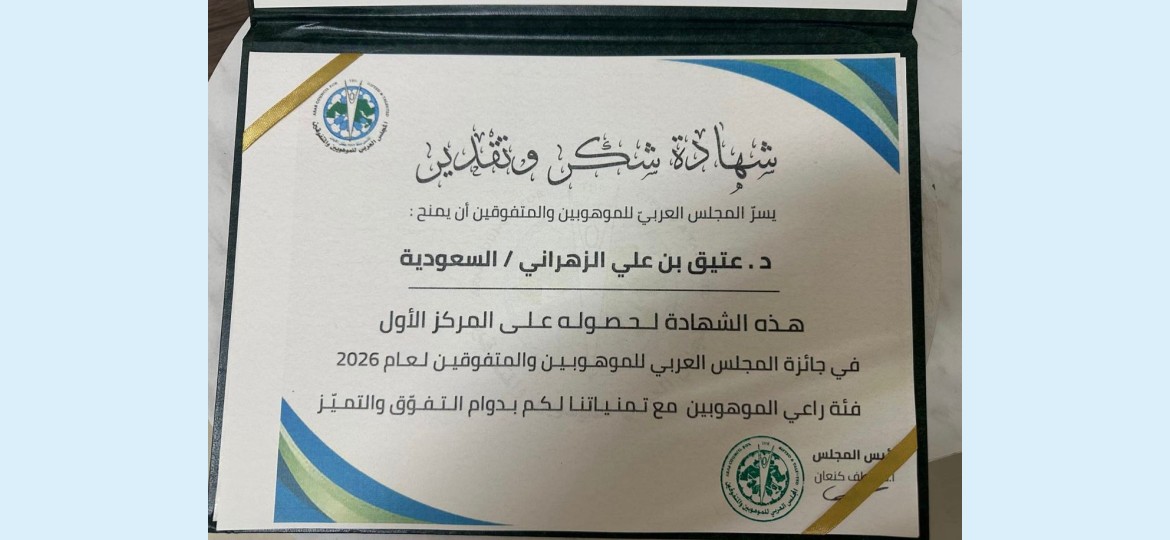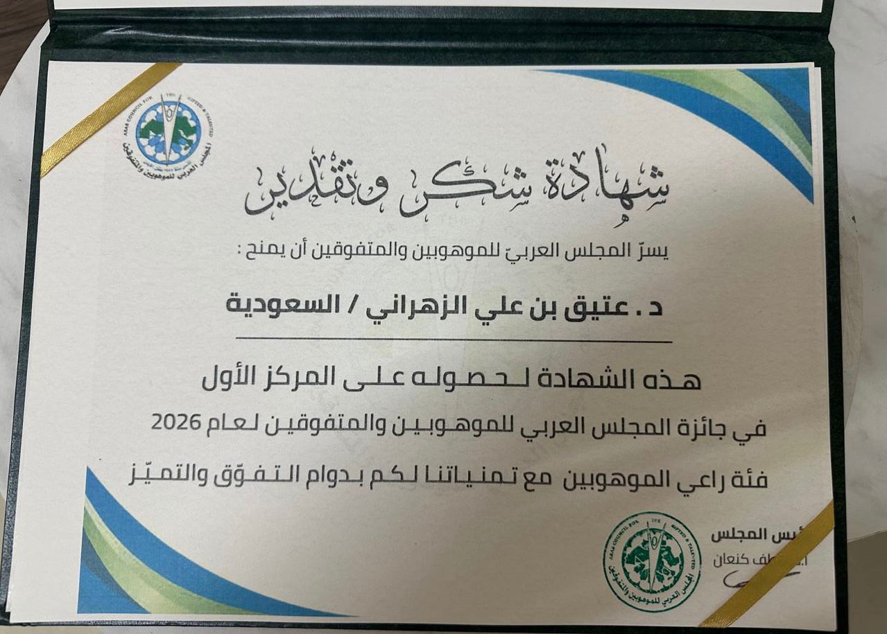 حقق الدكتور عتيق بن علي الزهراني إنجازًا عربيًا مميزًا بفوزه بالمركز الأول في مسابقة رعاية الموهوبين على مستوى الوطن العربي، متوجًا بجائزة التميز ودرع المسابقة وشهادة التقدير المقدمة من المجلس العربي لرعاية الموهوبين، بعد منافسة شارك فيها 12 مشروعًا تربويًا من مختلف الدول العربية.
