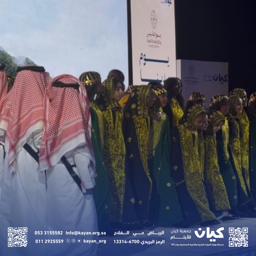 وتخلل الحفل تقديم قصيدة بعنوان «يوم التأسيس» لشاعرة كيان الابنة هند أحمد، إضافة إلى عروض استعراضية وفعاليات تراثية وثقافية من مختلف مناطق المملكة، شارك فيها الأبناء والأسر البديلة في مشهد وطني مميز يعكس الاعتزاز بالجذور والهوية الوطنية.