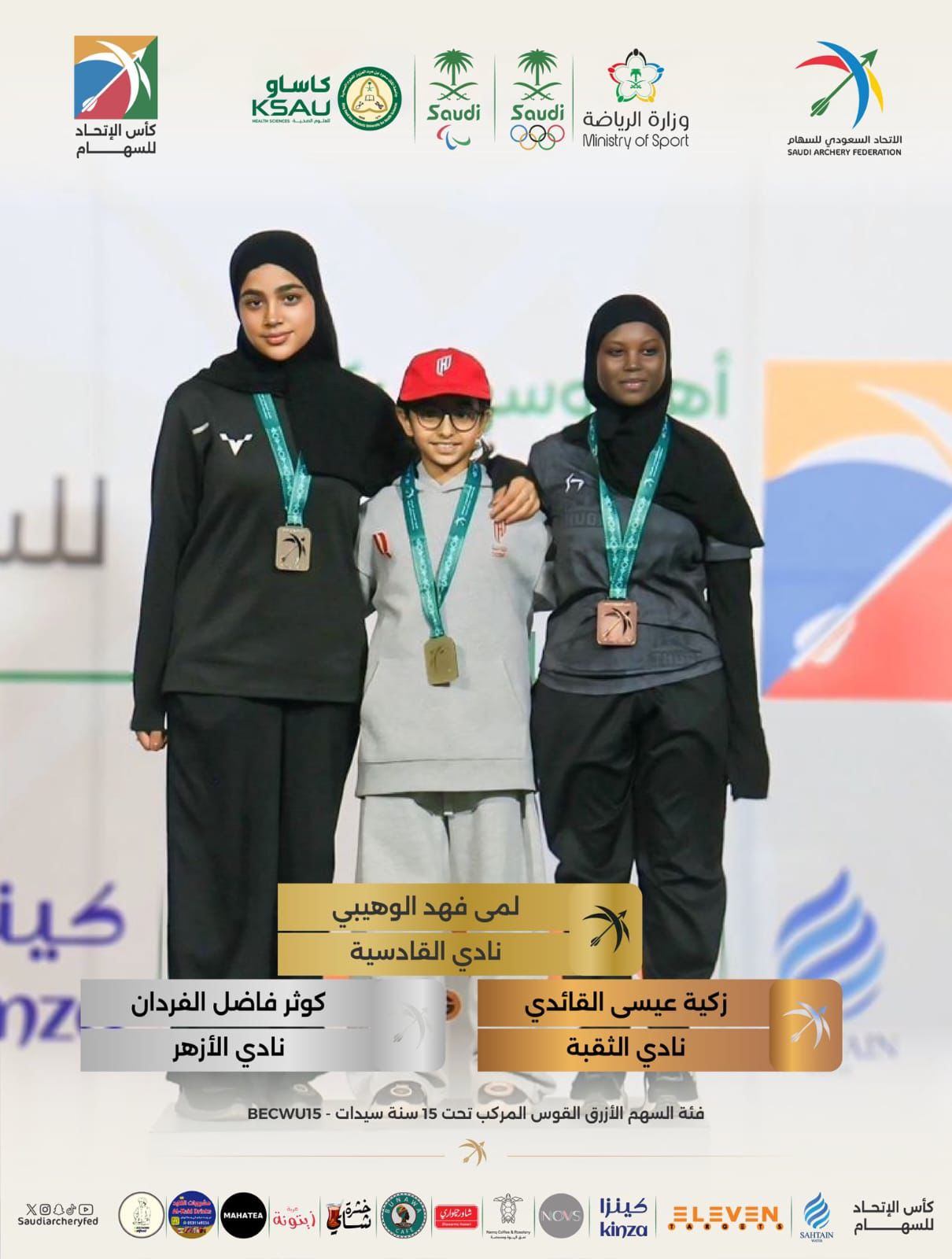 وحققت اللاعبة كوثر فاضل الفردان ميدالية فضية ضمن فئة السهم الأزرق – القوس المركب – تحت 15 سنة (سيدات)، بعد أداء ثابت ومستوى تنافسي عالٍ عكس موهبتها وحسن إعدادها.