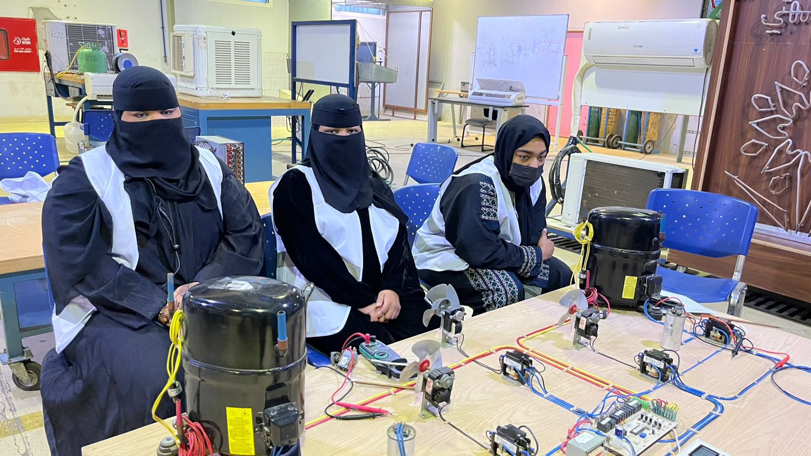 وتضمّن البرنامج مسارًا تدريبيًا عمليًا ركّز على تنمية المهارات التطبيقية لدى المشاركات، حيث خضن تجارب ميدانية مباشرة في عدد من التخصصات التقنية، شملت أساسيات الكهرباء، ومبادئ ميكانيكا السيارات، وأعمال التمديدات الصحية، وأنظمة التكييف والتبريد، إضافة إلى عدد من البرامج المهنية والتأهيلية المساندة، بهدف بناء قاعدة معرفية ومهارية متكاملة تعزز جاهزيتهن لدخول المجالات التقنية بثقة وكفاءة.
