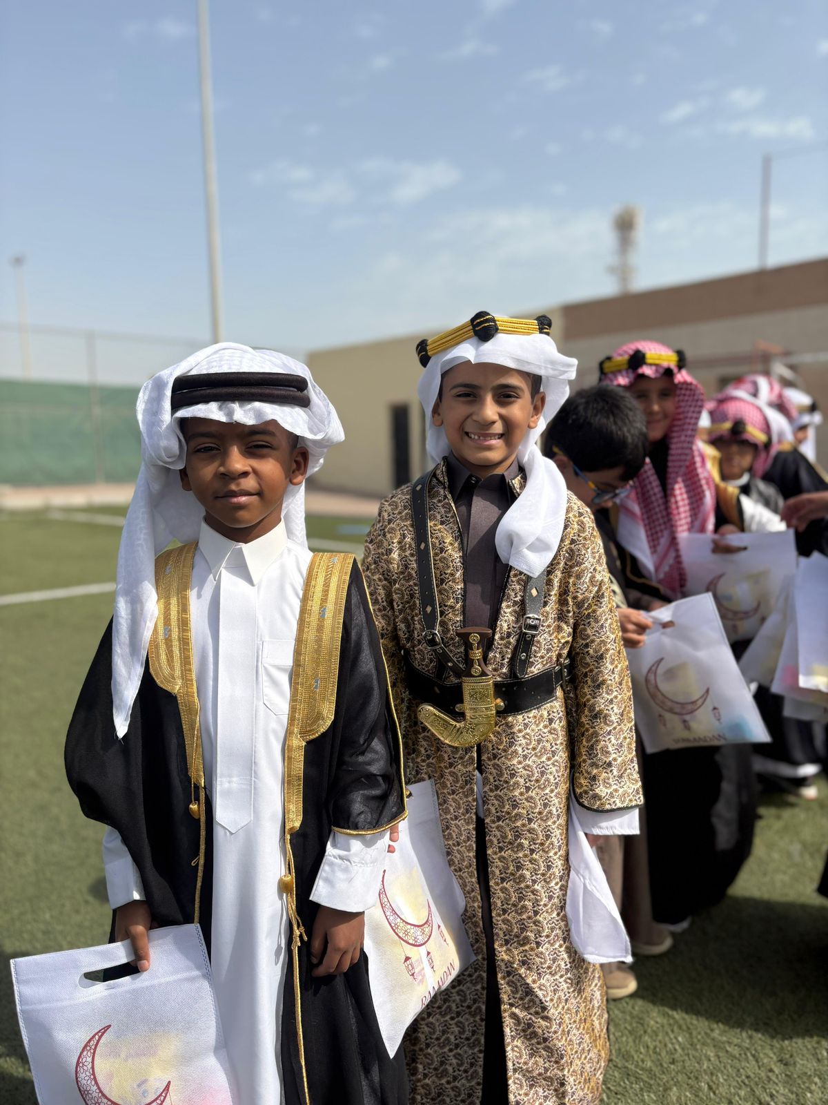 كما حرص الطلاب على الحضور بالزي الخاص بيوم التأسيس ما أضفى على الفعالية طابعًا وطنيًا مميزًا يجمع بين الأصالة والرياضة.