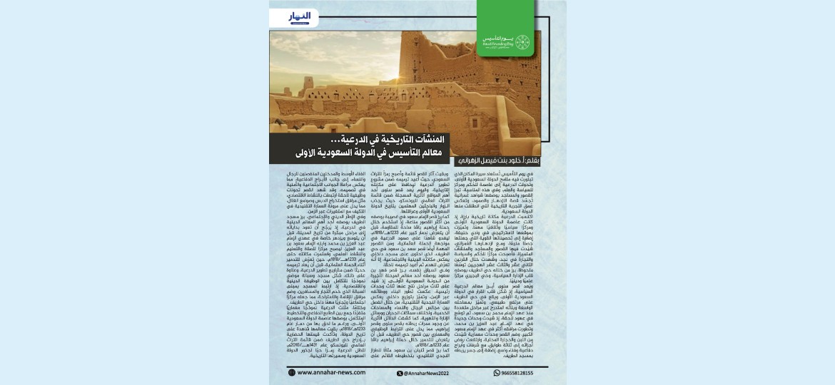 في يوم التأسيس تُستعاد سيرة المكان الذي تبلورت فيه ملامح الدولة السعودية الأولى، وتحولت الدرعية إلى عاصمة للحُكم ومركز للسياسة والعِلم، وفي هذه المناسبة، تبرز القصور والمساجد بوصفها شواهد عُمرانية تُجسّد قصة الازدهار والصمود، وتعكس عُمق التجربة التاريخية التي انطلقت منها الدولة السعودية.