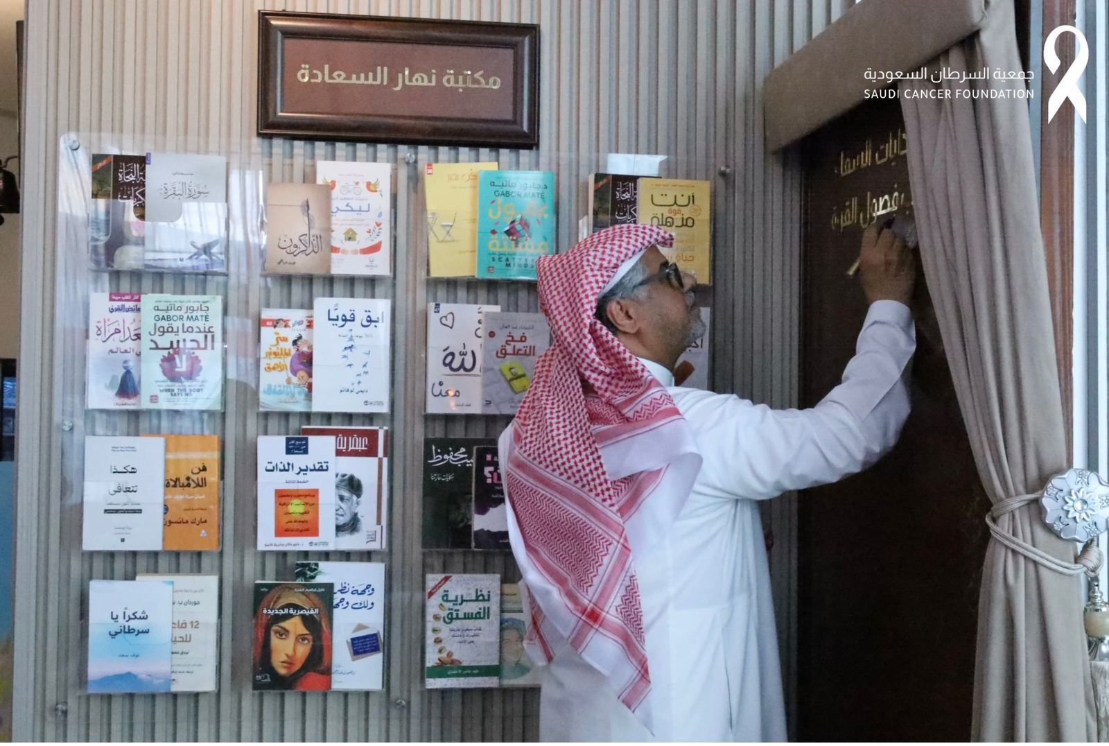 للتعرف على قاعة "نهار السعادة" التابعة للجمعية مطلعاً على الجهود المبذولة لدعم المرضى والتعرف على مشاريع الجمعية النوعية