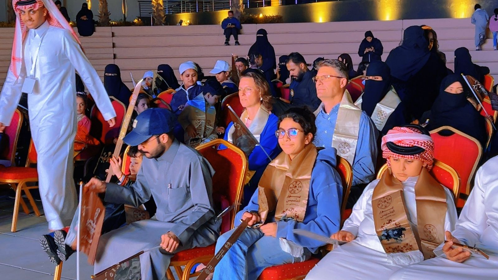 كما تخلل الحفل تقديم باقة من الأغاني الوطنية الخاصة بيوم التأسيس، التي تفاعل معها الجمهور بحماس كبير، مرددين كلماتها ومعبّرين عن اعتزازهم بتاريخ المملكة العريق وإرثها الممتد لثلاثة قرون.