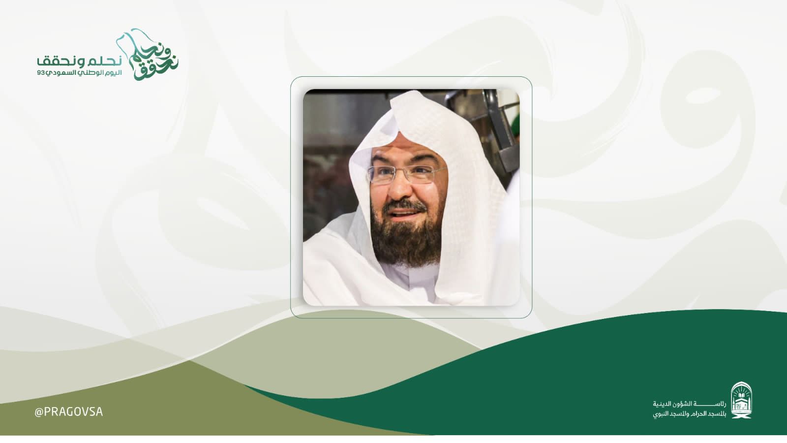 أعدت رئاسة الشؤون الدينية للمسجد الحرام والمسجد النبوي، برنامجًا منوعًا للاحتفاء باليوم الوطني ال ٩٣ للمملكة العربية السعودية، بما يليق بمكانتها، حيث يتضمن العديد من البرامج والفعاليات، والمناشط والندوات، وحلقات النقاش والمحاضرات، والمسابقات؛ لتجسيد مفهوم مبدأ حب الوطن، وتأصيله كونه واجبًا دينيًا ومطلبًا وطنيًا..