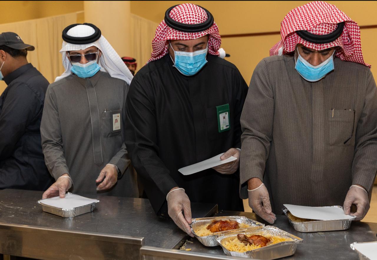 واطّلع خلال الجولة على آلية سير العمل وإجراءات إعداد وتجهيز الوجبات، مستمعًا إلى شرحٍ عن مراحل التنفيذ وآلية التوزيع، كما شارك القائمين على المشروع في تجهيز وجبات الإفطار للمستفيدين.