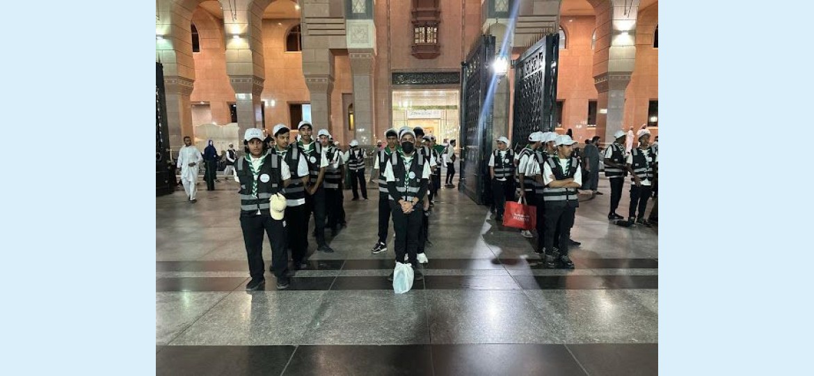 وتم تقسيم فريق الكشافة إلى مجموعتين؛ حيث يتواجد 150 كشافًا في كلٍّ من مكة المكرمة ومثلهم في المدينة المنورة، حيث جرى توزيعهم في الحرم المكي على خمس مجموعات، شملت: باب الملك فهد، وباب الملك عبدالعزيز، والمشايات الجانبية، والمسعى (الدور الأرضي والسطح)، وصحن المطاف، إضافة إلى سلالم الأبواب؛ بهدف تسهيل حركة المعتمرين وتنظيم الحشود خلال أوقات الذروة.