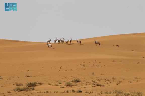 وتقع المحمية على طول الحافة الغربية للربع الخالي على مساحةٍ تزيد عن 12.750 كيلومترًا مربعًا، وتُشكل الصحراء الرملية المتصلة الوحيدة في آسيا الاستوائية، وأكبر بحرٍ رمليٍ متواصل على سطح الأرض. وتتميز بتنوع نُظمها البيئية التي توفر موائل طبيعية حيوية، والذي يجعل منها مثالًا استثنائيًا للتطور البيئي والأحيائي المستمر لمجتمعات النباتات والحيوانات الفطرية؛ حيث تضم أكثر من 120 نوعًا من النباتات البرية الأصيلة، إضافةً إلى الحيوانات الفطرية المهددة بالانقراض التي تعيش في واحدةٍ من أقسى البيئات على كوكب الأرض، بما في ذلك القطيع الوحيد الحر من المها العربي في العالم، والظباء الجبلية والرملية؛ لتكون بذلك أغنى منطقةٍ معروفةٍ من الناحية الأحيائية في الربع الخالي حيث يلتقي أكبر بحر رملي في العالم مع ثاني أطول سلسلة جبلية في الجزيرة العربية؛ لتشكل لوحة طبيعية فريدة وثراء في التنوع رغم صعوبة المناخ.