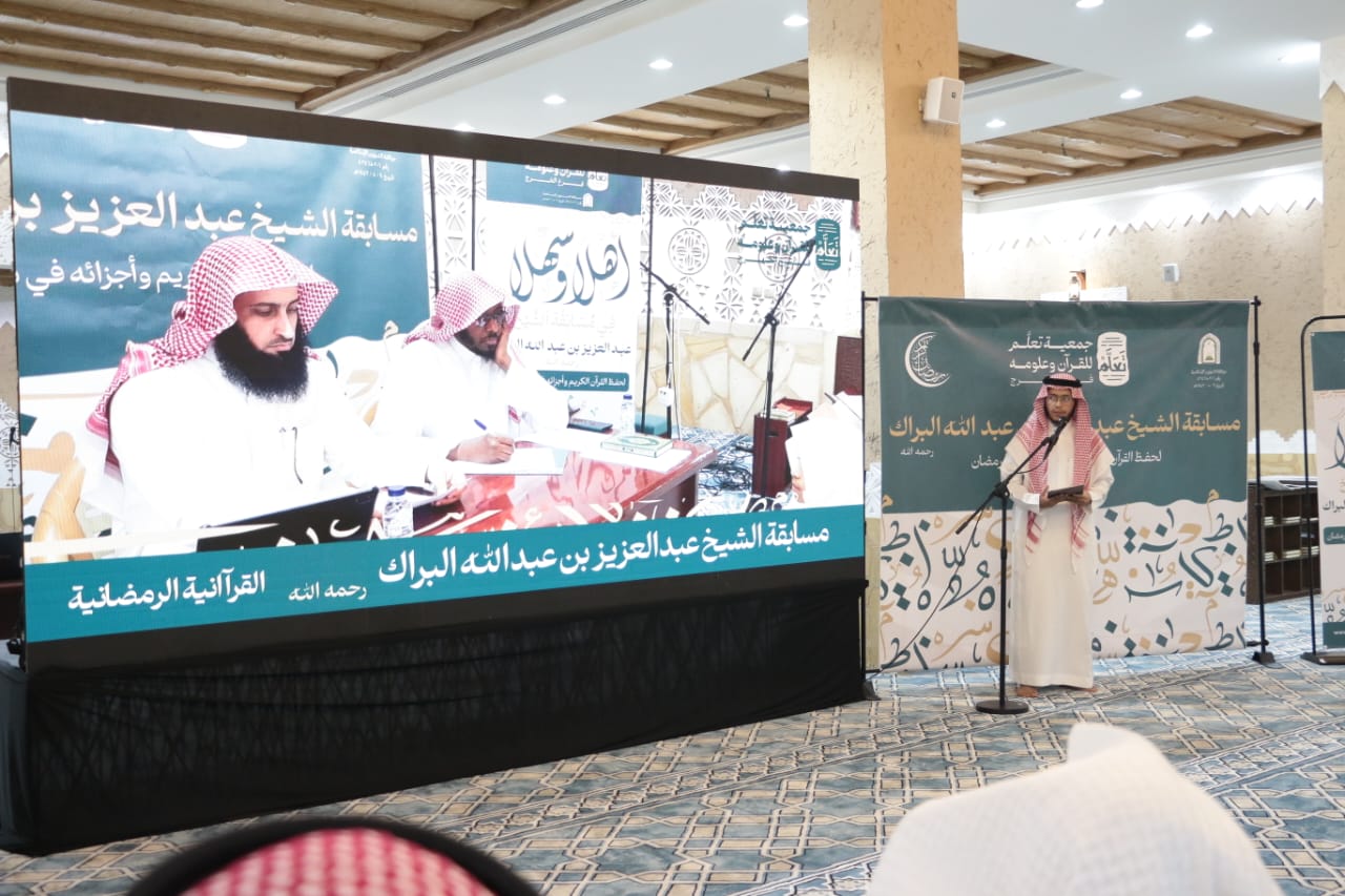 ثم ألقى الأستاذ منصور البراك كلمةً قدّم فيها شكره وتقديره للجمعية على جهودها المباركة في تنظيم المسابقة، وما تبذله من عنايةٍ بخدمة القرآن الكريم وتشجيع حفظه بين أفراد المجتمع.