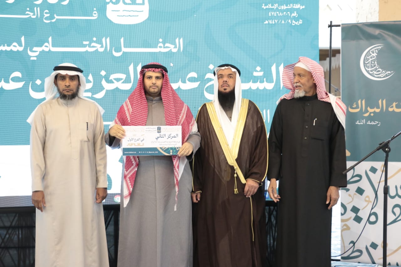 واختُتم الحفل بإعلان أسماء الفائزين والفائزات بالمراكز الثلاثة الأولى في كل فرع من فروع المسابقة، إضافةً إلى عددٍ من الفائزين من المركز الرابع حتى العاشر، حيث جرى التواصل معهم مسبقًا تقديرًا لتميّزهم وتحفيزًا لهم على مواصلة حفظ كتاب الله تعالى.