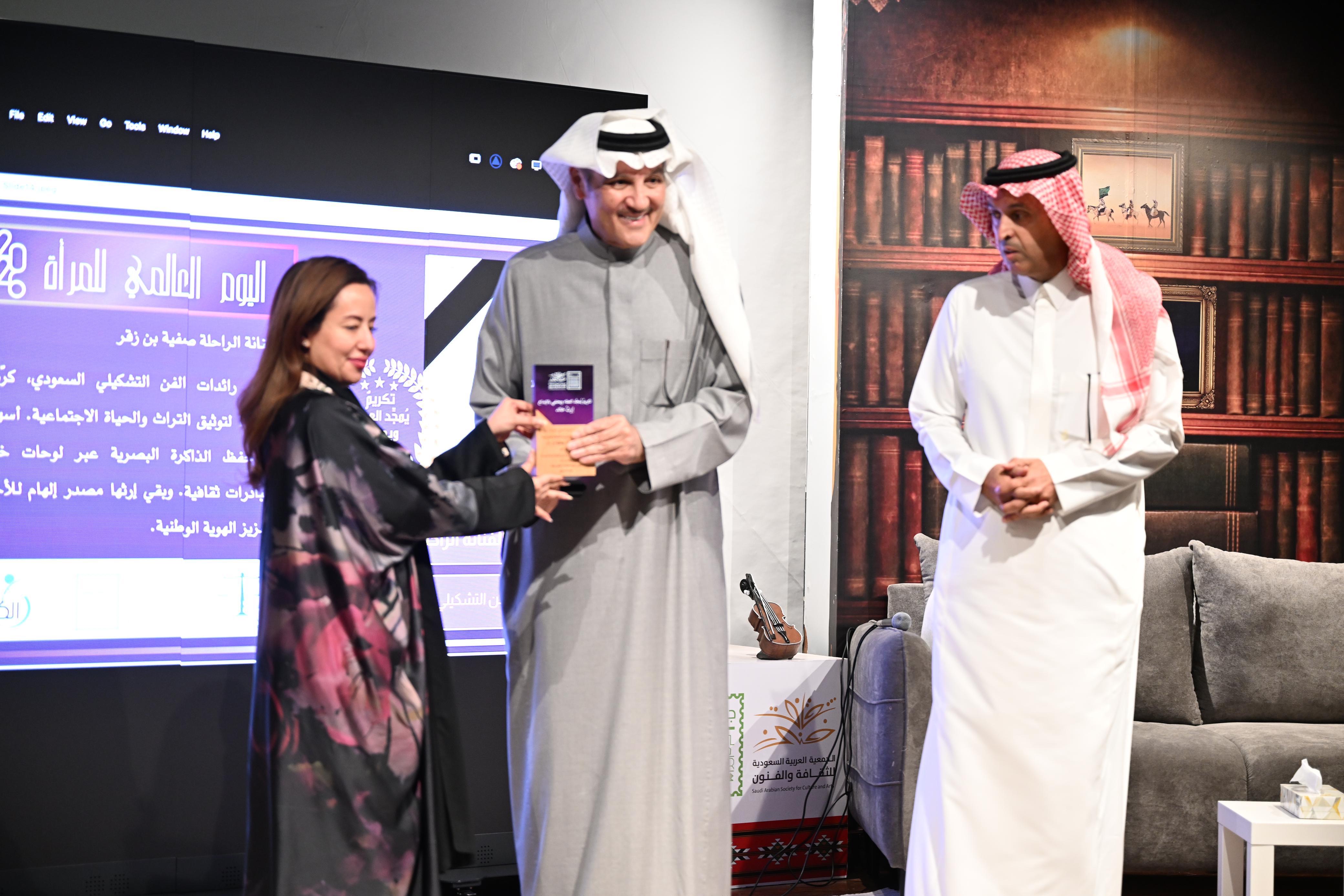 وشهدت الأمسية مشاركة السفير أسامة نقلي والإعلامي سلامة الزيد في تكريم الراحلتين الفنانة صفية بن زقر والشاعرة ثريا قابل تحت شعار «إرث خالد»، تقديرًا لما تركتاه من أثر فني وأدبي راسخ أسهم في تشكيل الوعي الجمالي والثقافي في المجتمع السعودي.