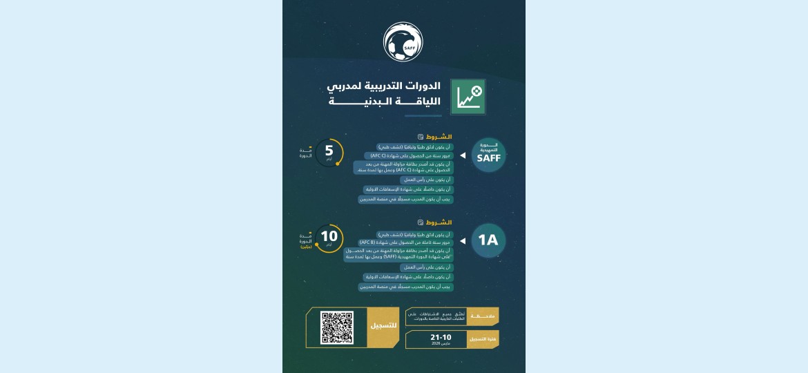 وتأتي هذه الدورات ضمن استراتيجية الاتحاد السعودي لكرة القدم لإعداد وتأهيل المدربين الوطنيين في تخصص اللياقة البدنية، بما يسهم في سد احتياجات الأندية والمنتخبات الوطنية، وتمكين المدربين من الحصول على الرخص الآسيوية المعتمدة التي تخولهم العمل رسمياً، إلى جانب تعزيز دور التخصصات المساندة داخل الأجهزة الفنية.