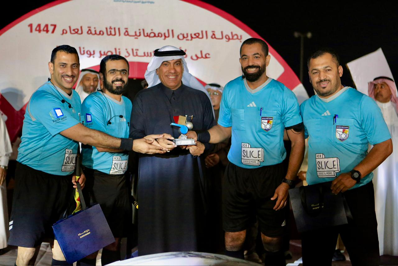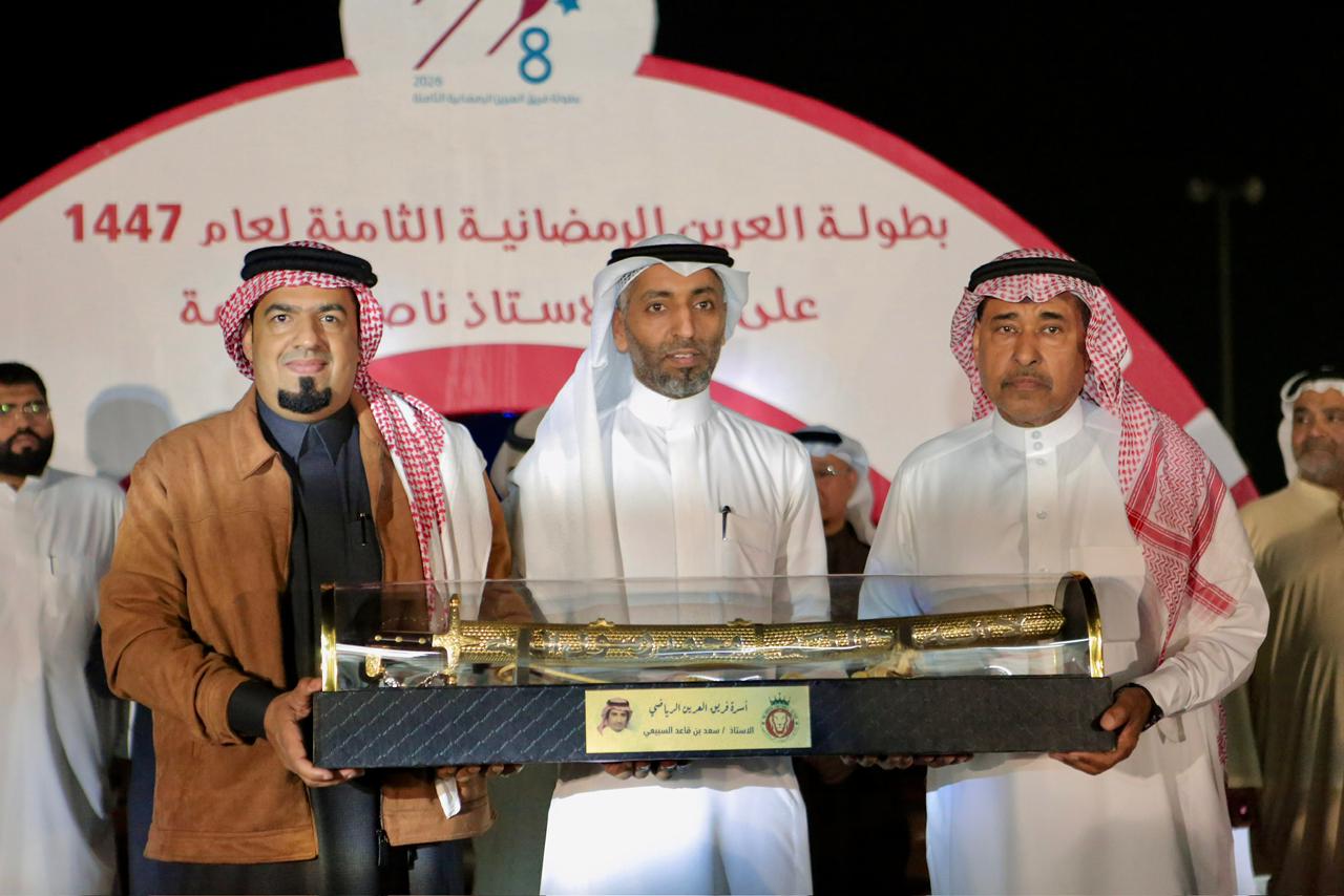 اختتمت منافسات بطولة العرين الرمضانية في نسختها الثامنة لعام 1447 هـ بالهفوف على كأس الاستاذ ناصر بو ناجمة والذي تَوَّج فريق السالمية بكأس المركز الأول وذلك بعد فوزه على فريق كاظمة في المباراة النهائية وبركلات الترجيح بعد أن انتهت في وقتها الأصلي بتعادل إيجابي بهدف لكلٍ منهما تقدم كاظمة أولاً عن طريق لاعبه عامر الدوسري فيما كان الرد من السالمية بالتعادل في الدقائق الأخيرة من عمر المباراة سجله اللاعب سالم الشكل وامتدت ركلات الترجيح الى 12 ركلة حتى حسمها حارس السالمية عبد المحسن الدوسري بتصديه لركلة وتسجيل زميله محمد المغربي الركلة الأخيرة .