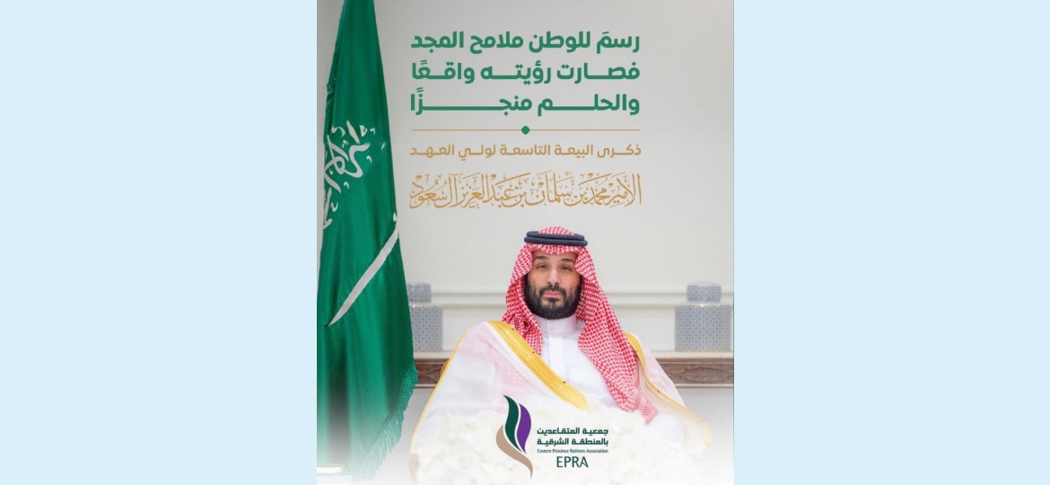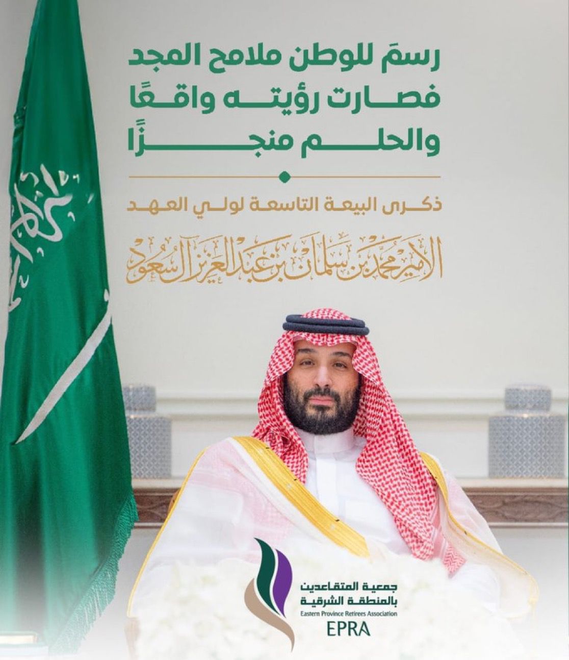 رفع رئيس مجلس إدارة جمعية المتقاعدين بالمنطقة الشرقية الأستاذ محمد بن سليمان القرناس باسمه ونيابة عن أعضاء مجلس الإدارة وكافة منسوبي الجمعية، أسمى آيات الولاء والوفاء إلى صاحب السمو الملكي الأمير محمد بن سلمان بن عبدالعزيز آل سعود ولي العهد رئيس مجلس الوزراء بمناسبة ذكرى البيعة التاسعة ، مؤكدًا ما تحمله هذه المناسبة من معانٍ وطنية تجسد عمق الانتماء والولاء للقيادة الرشيدة.