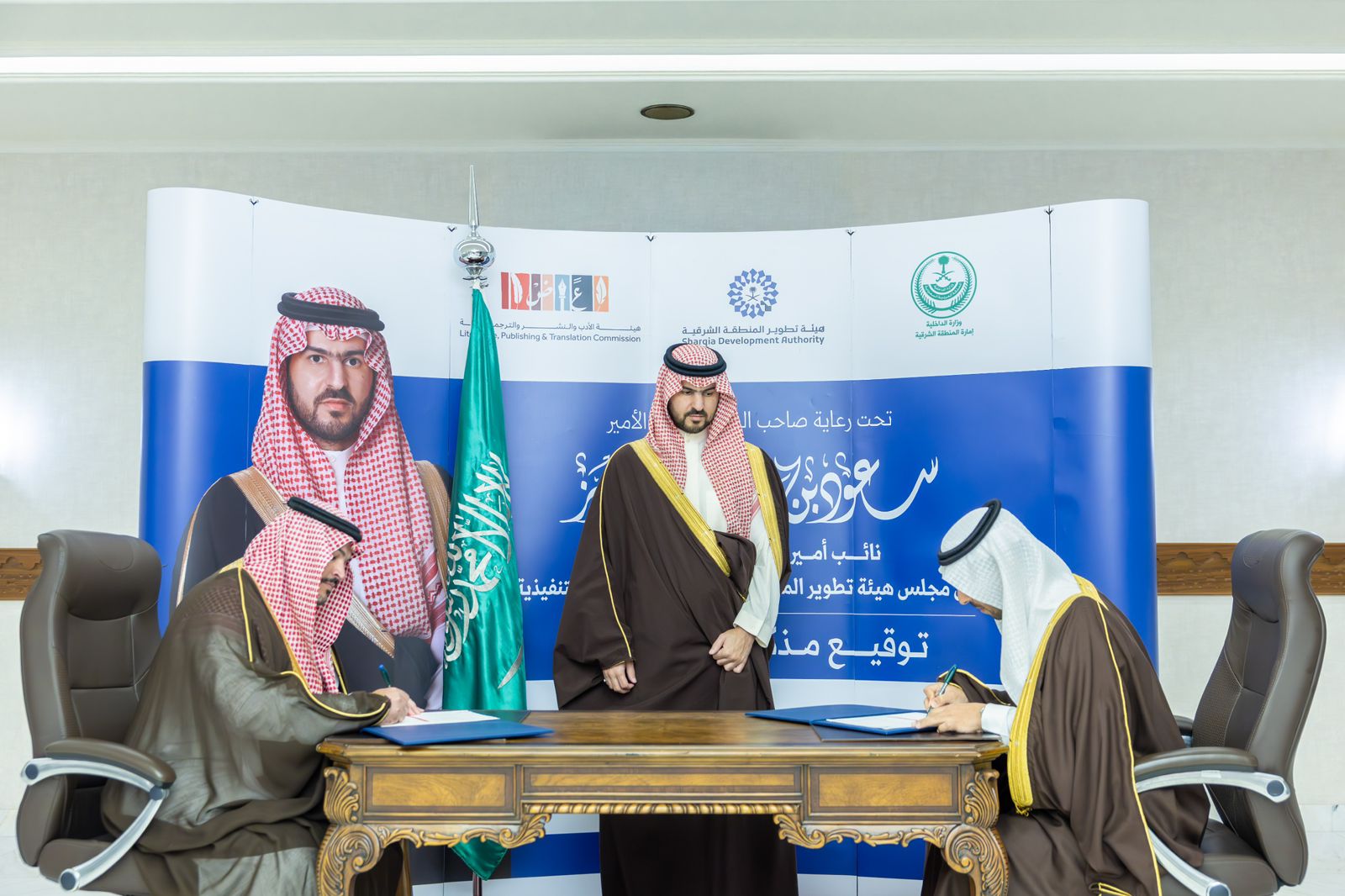 رعى صاحب السمو الملكي الأمير سعود بن بندر بن عبدالعزيز نائب أمير المنطقة الشرقية نائب رئيس مجلس هيئة تطوير المنطقة الشرقية رئيس اللجنة التنفيذية، في مكتب سموه بديوان الإمارة اليوم الاثنين، توقيع مذكرة تفاهم بين هيئة تطوير المنطقة الشرقية وهيئة الأدب والنشر والترجمة، في خطوة تستهدف تعزيز التكامل المؤسسي وتوحيد الجهود في تنمية القطاع الثقافي بالمنطقة.
