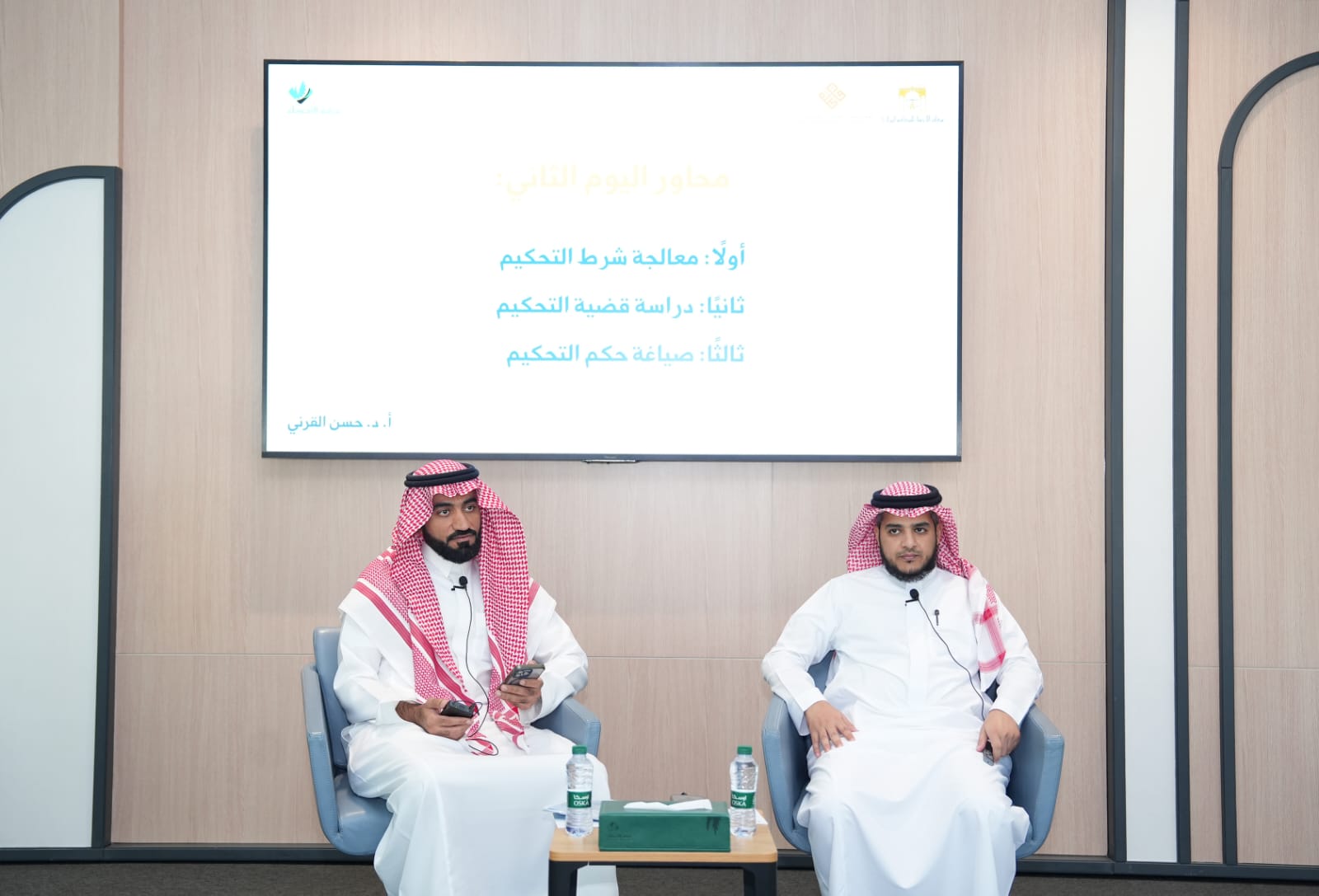 وقدّم الورشة الأستاذ الدكتور حسن القرني المُحكّم الممارس وأستاذ الفقه المقارن في كلية الشريعة بجامعة الملك فيصل، والدكتور محمد السيد الهاشم المحامي والمُحكّم المعتمد والمؤسس والدير العام لشركة فاصلة للمحاماة والاستشارات القانونية، بمشاركة (40) مشاركًا ومشاركة من المحامين والمحاميات الشباب وخريجي وخريجات كليات الحقوق والقانون.