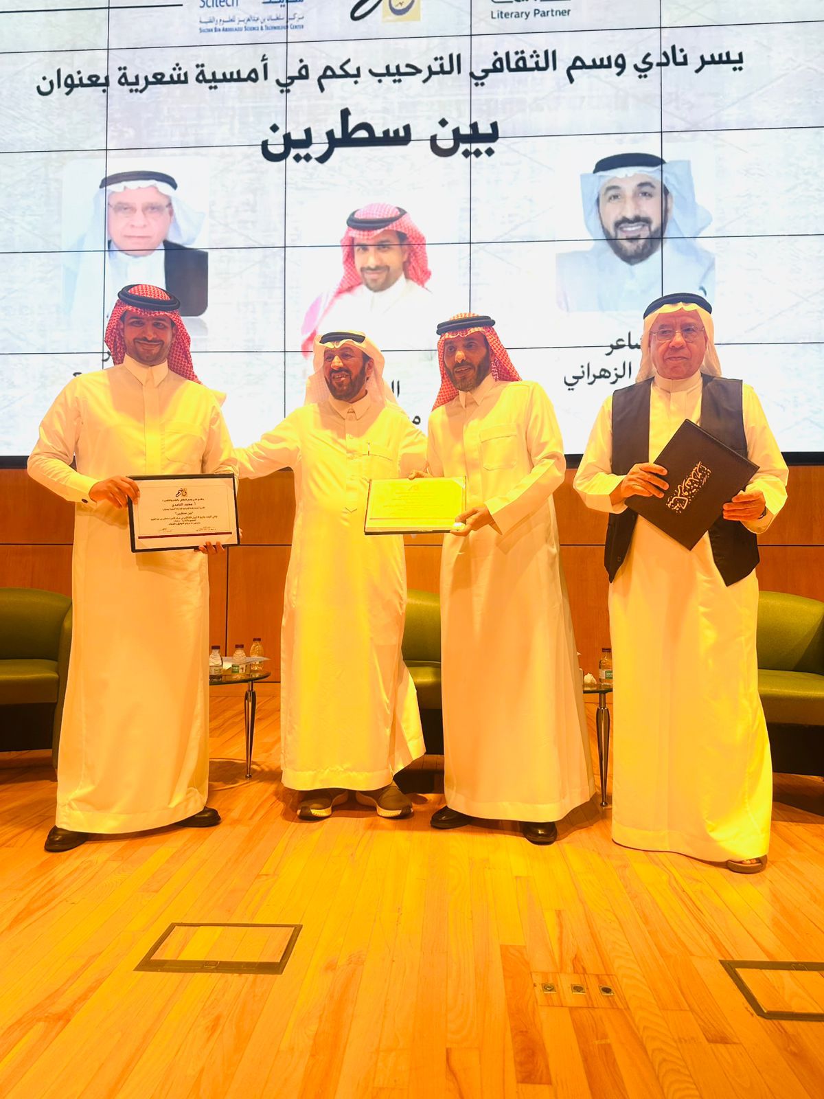 واختُتمت الأمسية بتكريم الشاعرين حسن الزهراني وخليل الفزيع، إلى جانب مقدم الأمسية الأستاذ محمد الغامدي، حيث قدّم لهم رئيس النادي شهادات شكر وتقدير.