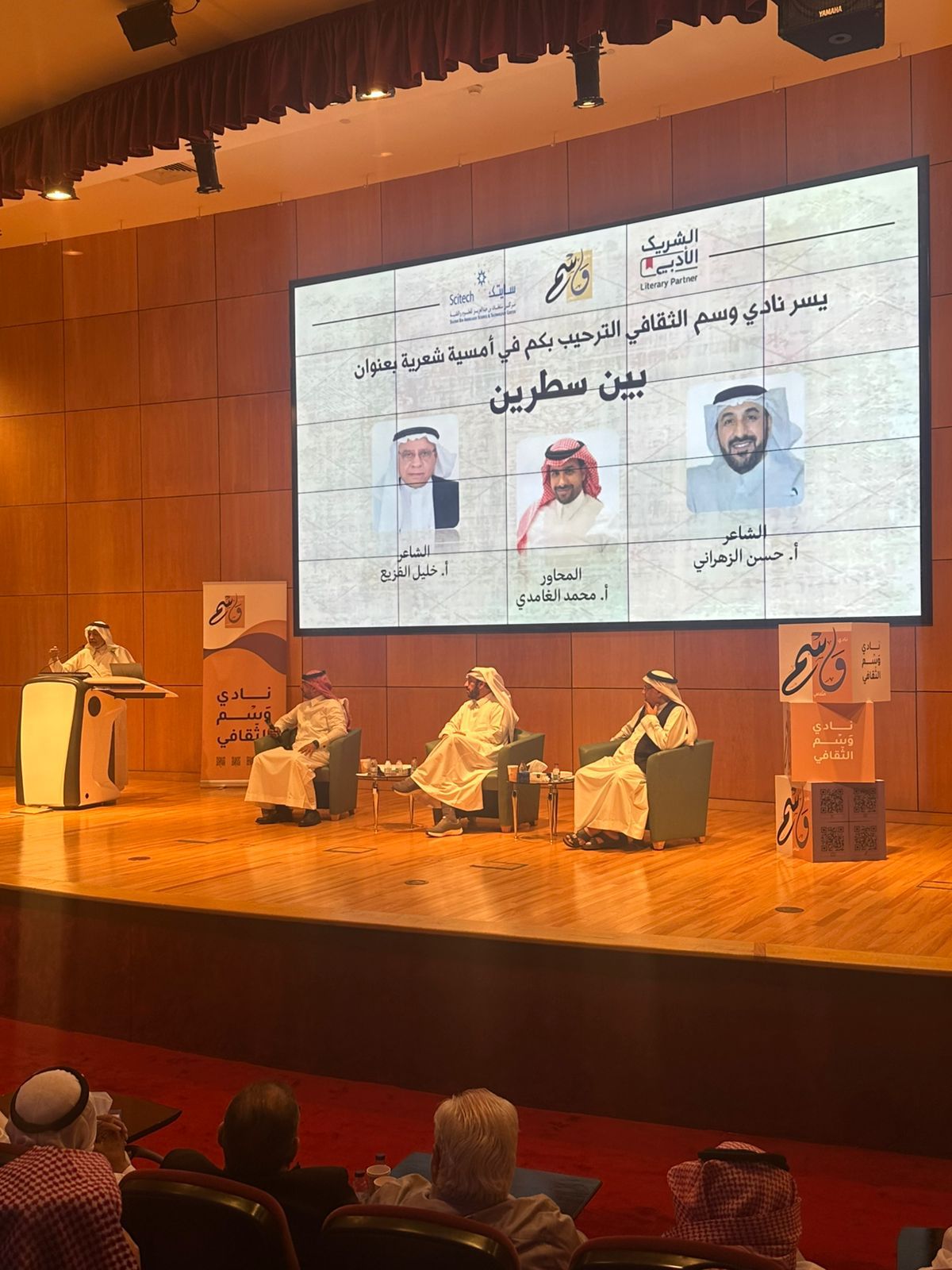 واستُهلت الأمسية بكلمة ترحيبية ألقاها رئيس نادي وسم الثقافي المهندس سعد الشبرمي، رحّب فيها بالضيوف والحضور، مستعرضًا جهود النادي وبرامجه الثقافية والأدبية، وما شهدته من تفاعلٍ مميز خلال الفترة الماضية، مؤكدًا أن أمسية “بين سطرين” تُعد من أبرز أمسيات عام 2026.