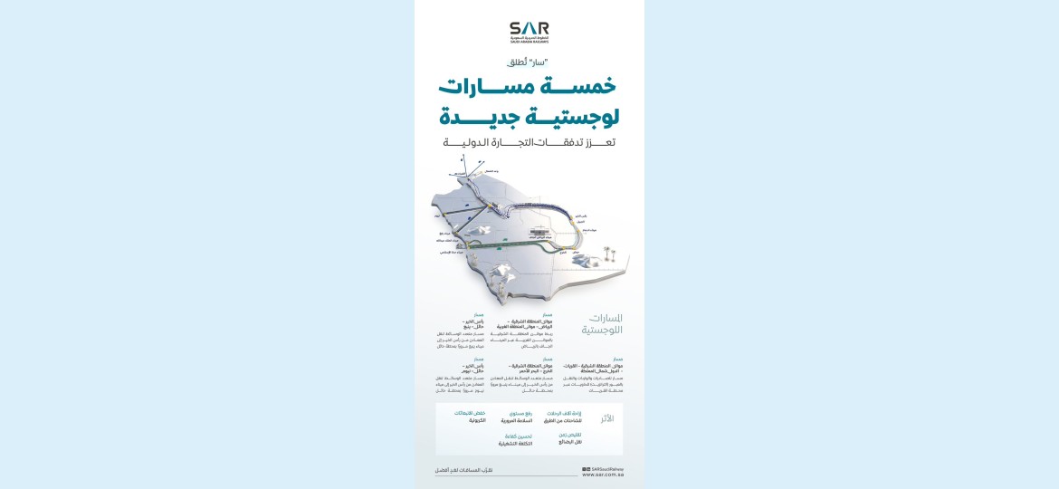 ومن المتوقع أن تسهم هذه المسارات في إزاحة آلاف الرحلات للشاحنات من الطرق، ورفع مستوى السلامة المرورية، وخفض الانبعاثات الكربونية، إلى جانب تقليص زمن نقل البضائع وتحسين الكفاءة التشغيلية، بما يعزز من دور "سار" كممكن وطني رئيسي لمنظومة النقل والخدمات اللوجستية.