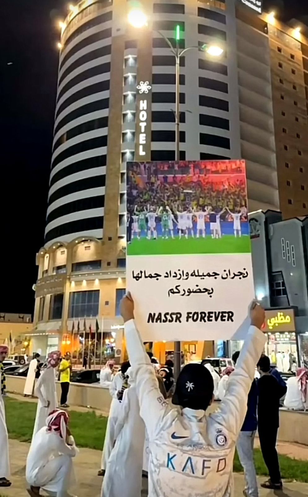 دشنت جماهير نادي النصر السعودي استقبالا حافلاً لفريق الكرة بنادي النصر، خلال وصوله إلى منطقة نجران بالمملكة العربية السعودية، لمواجهة فريق الأخدود بدوري المحترفين.