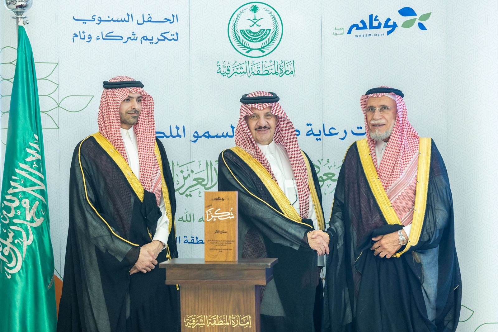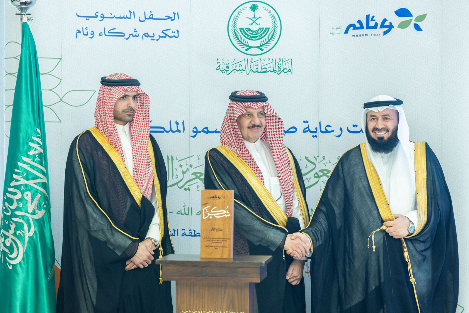 وأكد رئيس مجلس إدارة جمعية وئام الأستاذ أحمد العويد أن الجمعية تسعى إلى ترسيخ أهمية الأسرة، وتعزيز الوعي بدورها المحوري في بناء المجتمع، مستعرضاً أبرز منجزات الجمعية، والأثر الذي تحقق بفضل دعم الشركاء، مشيرًا إلى أن هذه الشراكات تمثل ركيزة أساسية في استدامة العمل التنموي وتعزيز أثره في المجتمع، معرباً عن شكره وتقديره لسمو أمير المنطقة الشرقية وسمو نائبه على دعمهم وتوجيهاتهم السديدة التي تمثل دافعًا لمواصلة العمل وتحقيق أثر تنموي مستدام، ولكل من أسهم في دعم رسالة الجمعية الإنسانية ، ثم كرم سمو أمير المنطقة الشرقية الداعمين وشركاء النجاح .